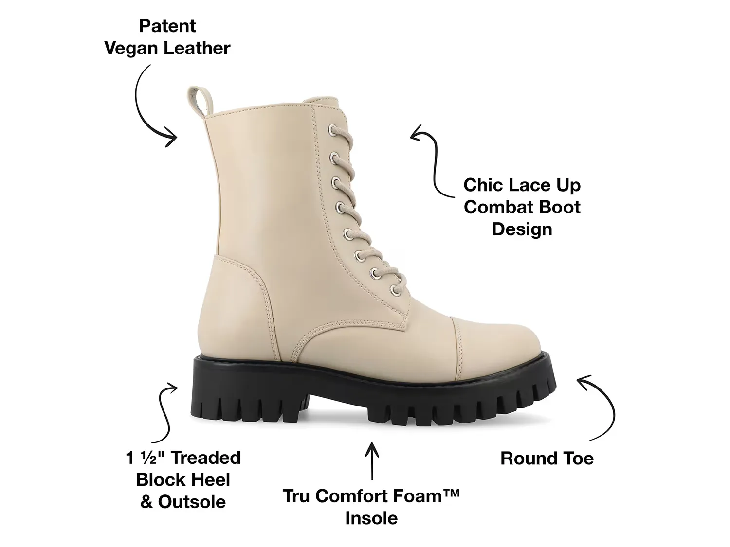 Подчеркните свой модный взгляд с ботильонами Aaley из коллекции Journee. Ботинки в боевой тематике с шикарным верхом из веганской синтетической ткани оснащены шнуровкой и молнией для идеальной посадки. Подошва с выступами обеспечивает надежное сцепление.