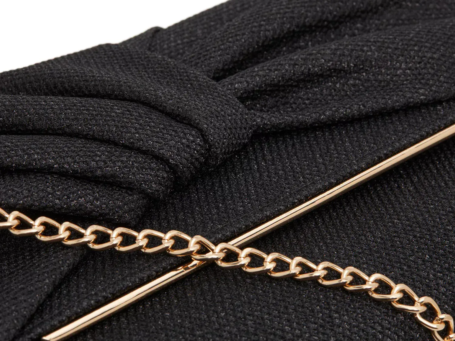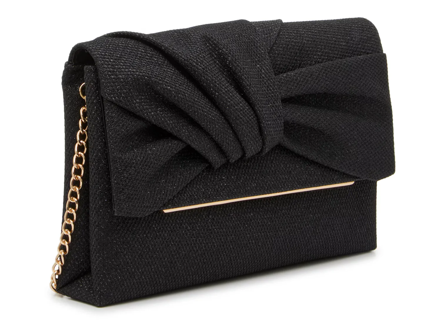 Добавьте последний штрих к своему любимому торжественному наряду, завершив его клатчем с блестящим бантом от Kelly & Katie. Этот стильный аксессуар украшен блестками и имеет витой узор спереди. В комплекте идет ремешок-цепочка, который легко превращает сумку в сумку через плечо без помощи рук.