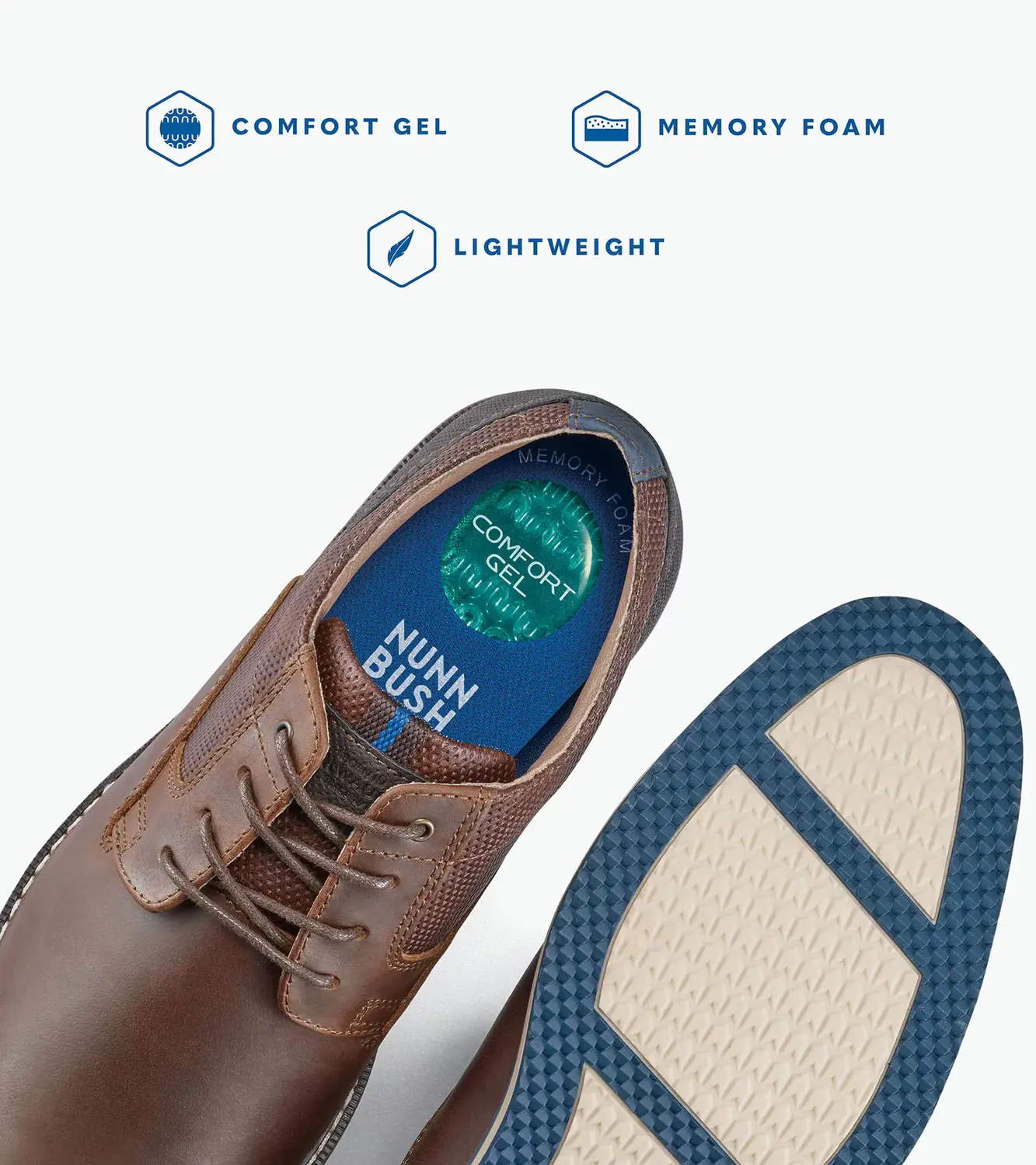 Ботинки Circuit с простым носком от Nunn Bush, привлекающие внимание грубыми деталями, станут ярким дополнением вашего образа. Рельефные детали и мягкие детали придают этой паре уличный вид, что легко дополнит вашу деловую коллекцию.