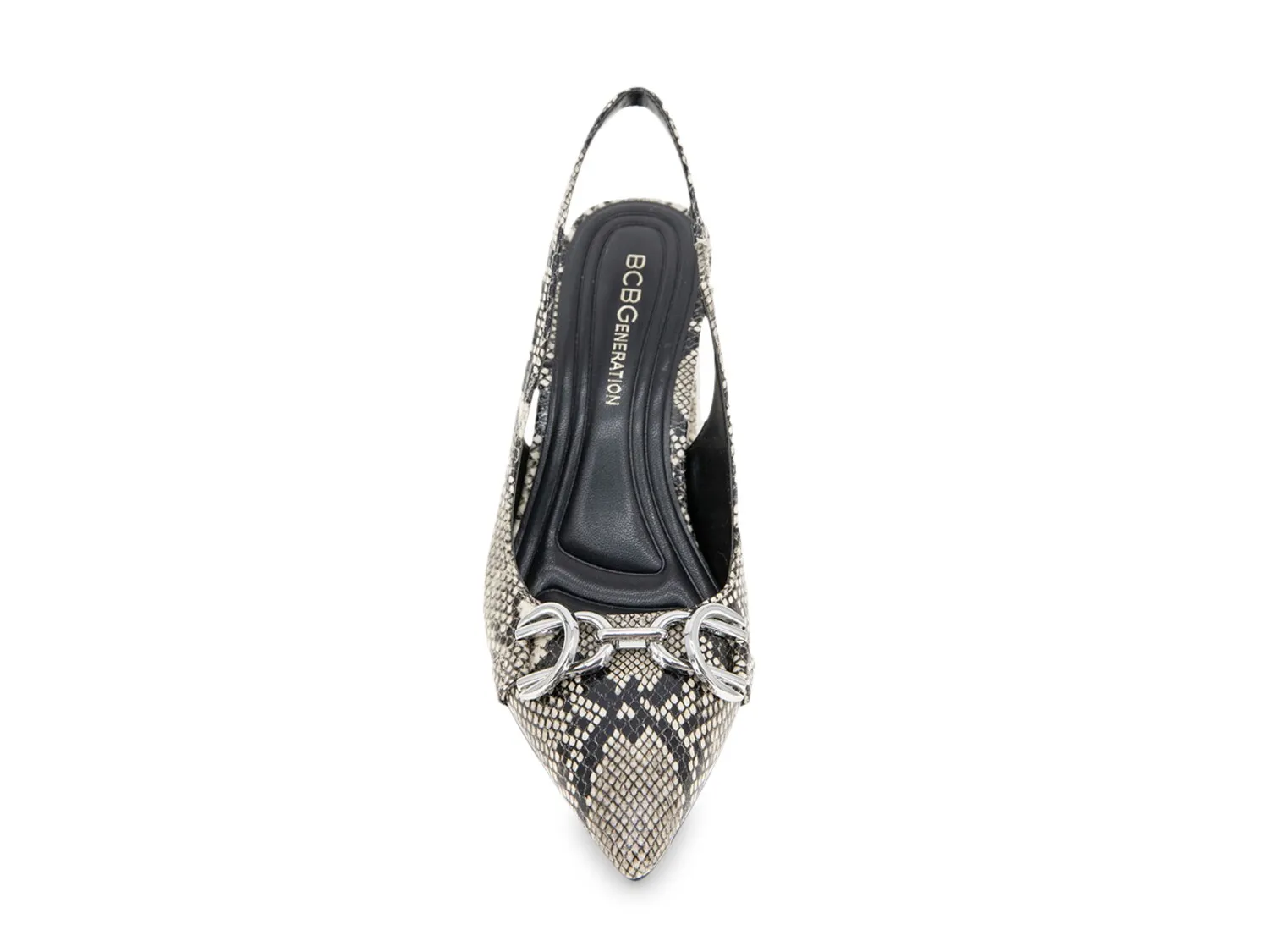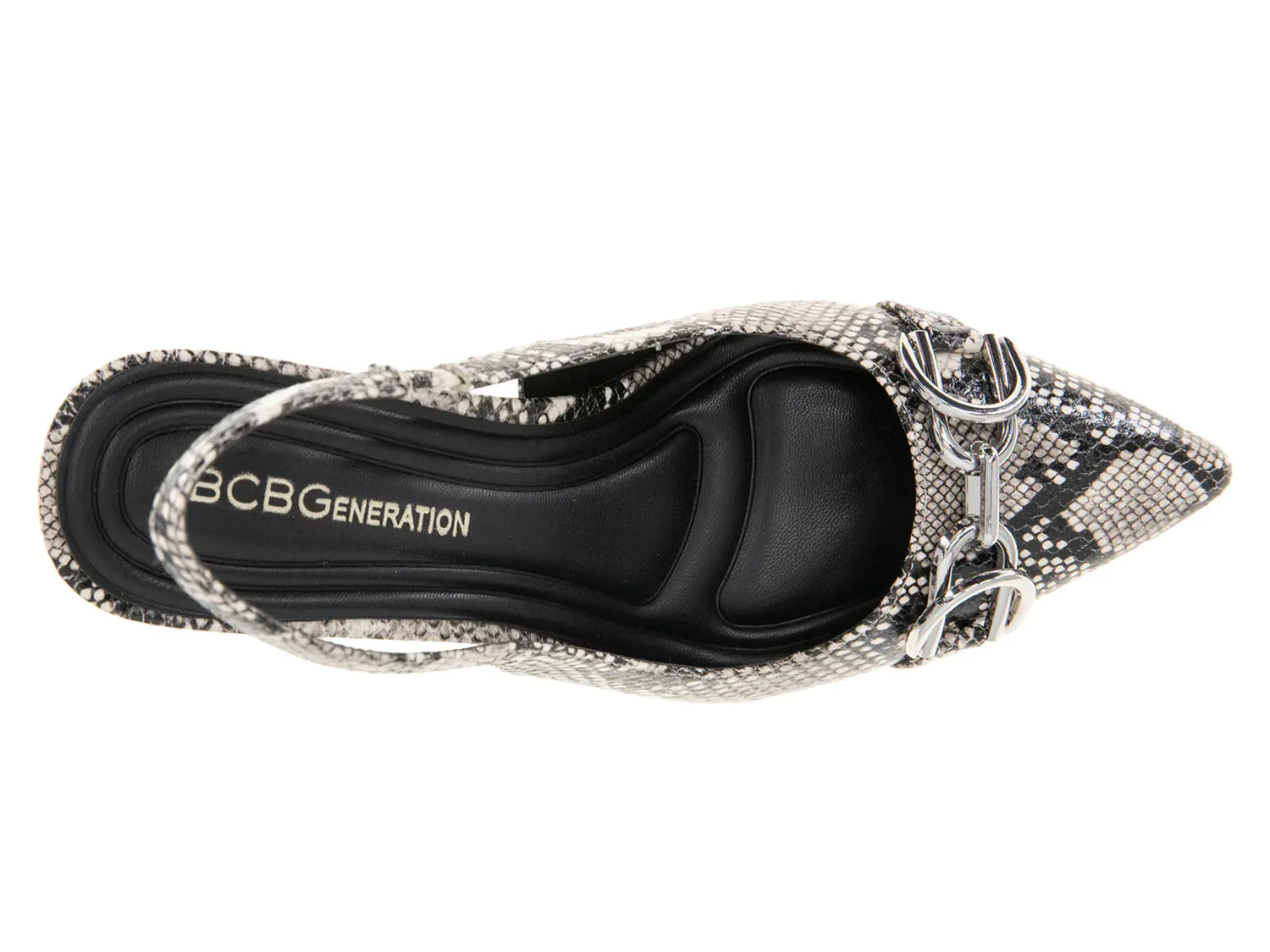 Наслаждайтесь винтажной атмосферой туфель Gardin от BCBGeneration в сочетании с вашим следующим официальным образом. Силуэт с открытой пяткой и металлические детали с легкостью дополнят эту пару и ваш гардероб.