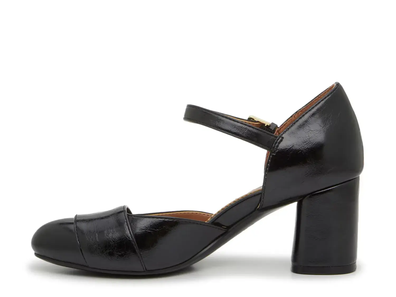 • Обтянутый блочный каблук 2,5 дюйма.