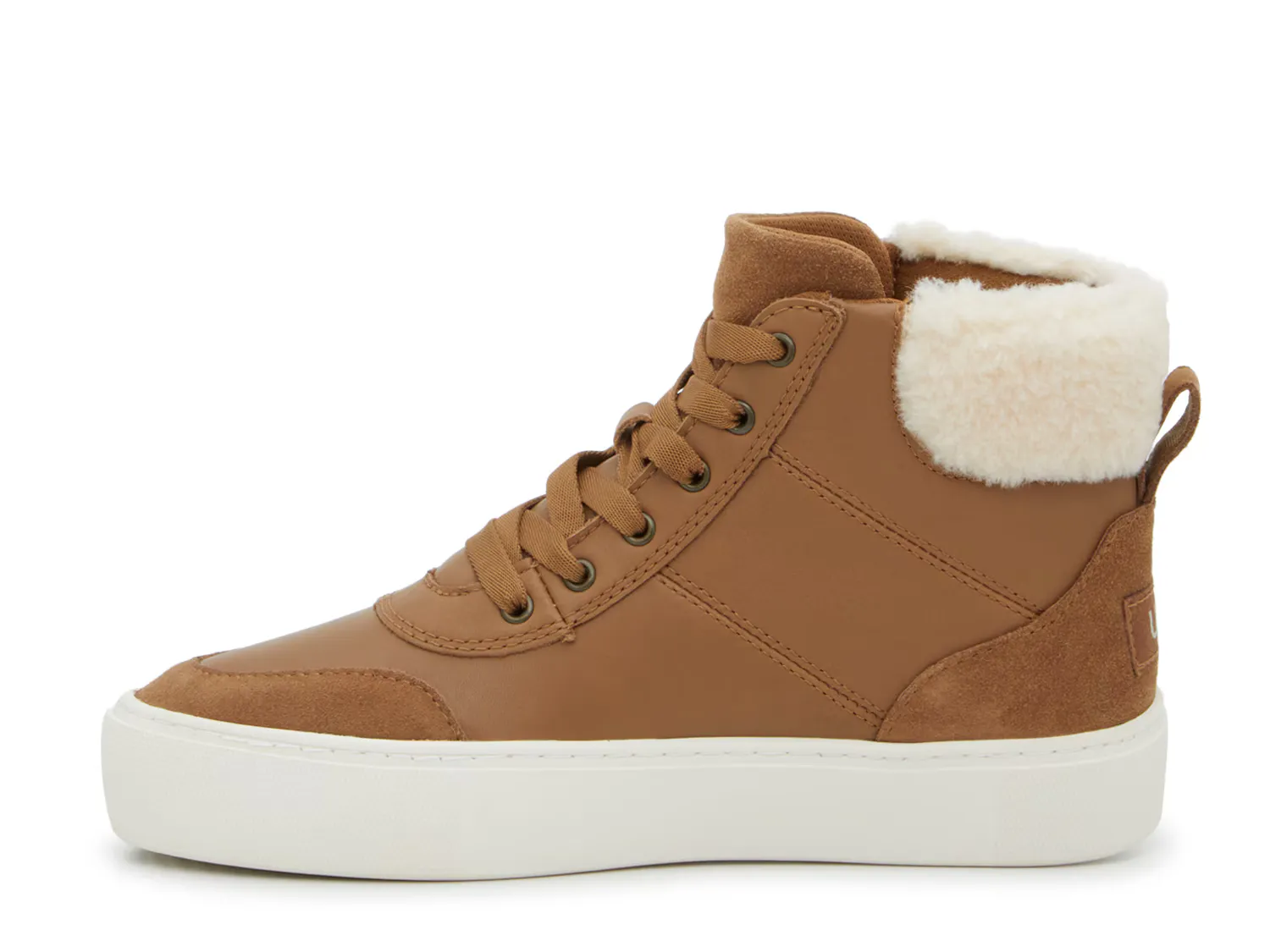 Добавьте уюта в спортивный стиль с помощью высоких кроссовок Cakewalk от UGG. Эта повседневная пара вдохновлена ​​культовым мастерством бренда и отличается качественным кожаным верхом и меховой отделкой. Классический силуэт с вулканизированной подошвой и шнуровкой.