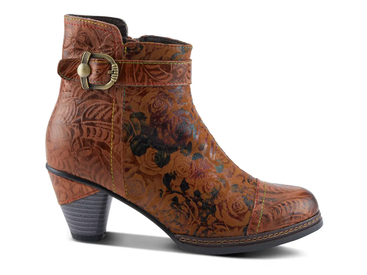 Бохо-ботинки Antilles от L'Artiste впечатлят бохо-шиком. Цветочные принты и тиснение придают художественный вид этим ботильонам с закрытым носком, дополненным классической пряжкой для ремня. Низкий, частично наборный и частично завернутый каблук делает эту модель идеальной для работы или повседневных приключений.