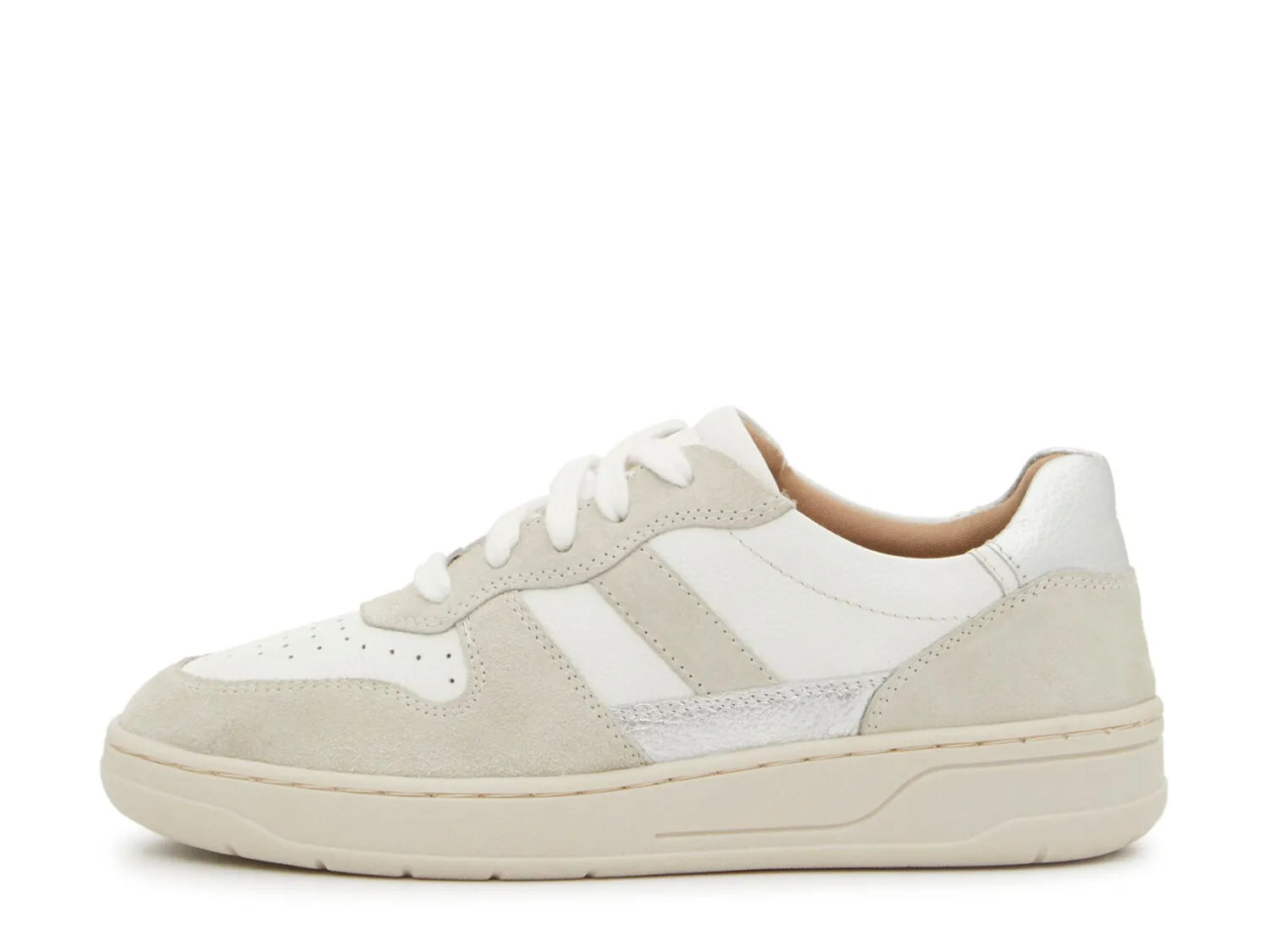 Что это: Простые кроссовки, подчеркнутые тканевыми вставками, тщательной строчкой, перфорированными деталями и серебристым акцентом сбоку.