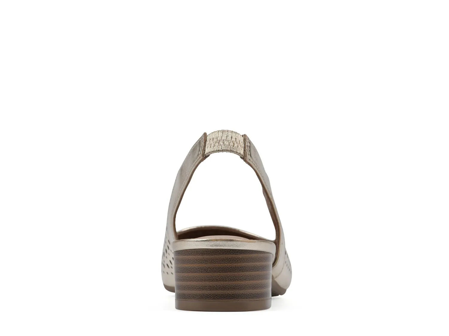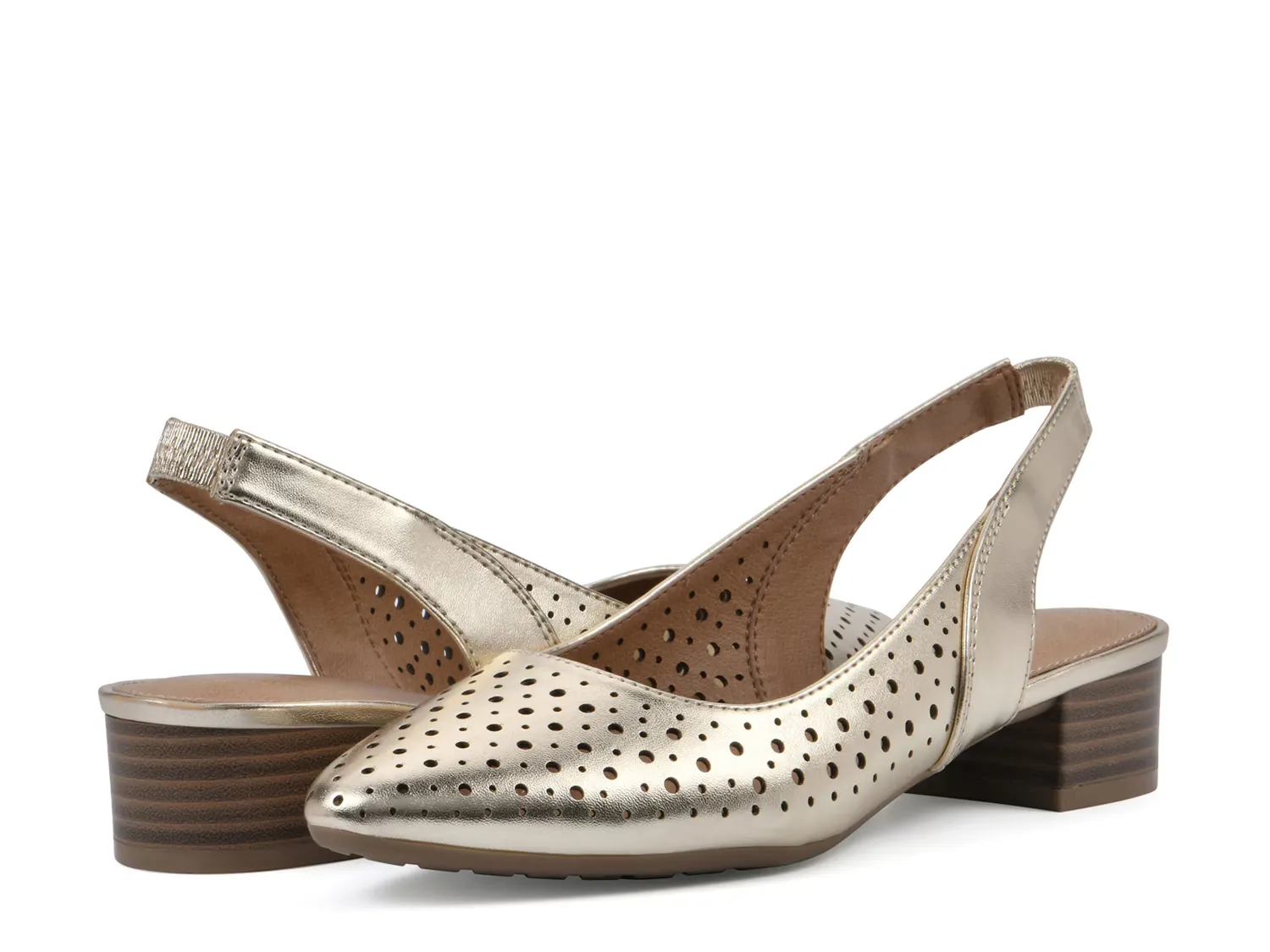 Наслаждайтесь классической моделью с открытой пяткой с туфлями Boronic от White Mountain. Перфорация по всей поверхности добавляет привлекательную деталь, а элегантный заостренный носок и наборный блочный каблук делают эту модель изысканной версией простого стиля.