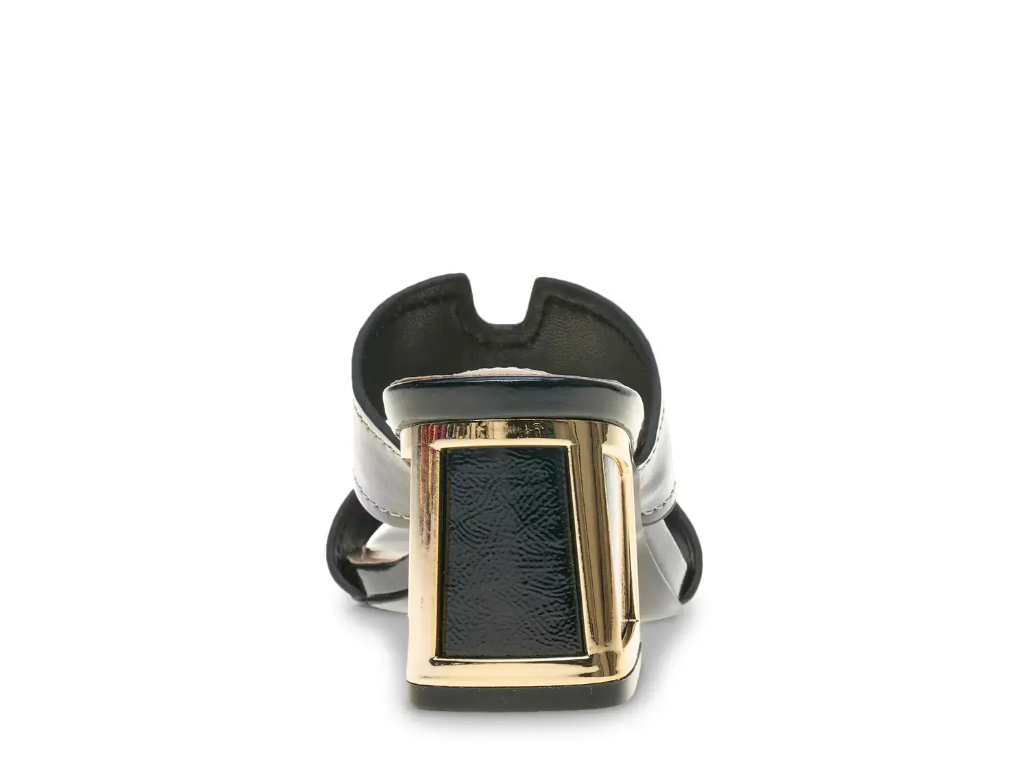 Сандалии Bright от Ninety Union впечатлят своей современной элегантностью. Т-образный ремешок с зубчатым краем и контрастной строчкой придает привлекательный вид этим шлепанцам с асимметричным блочным каблуком с золотистой металлической отделкой, придающим сияющий стиль.