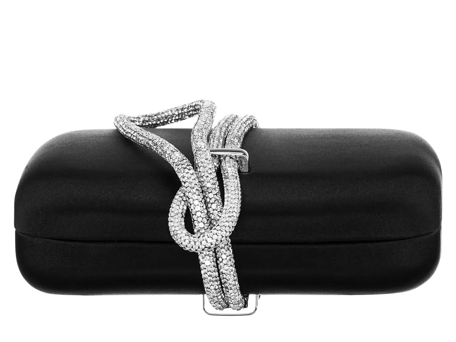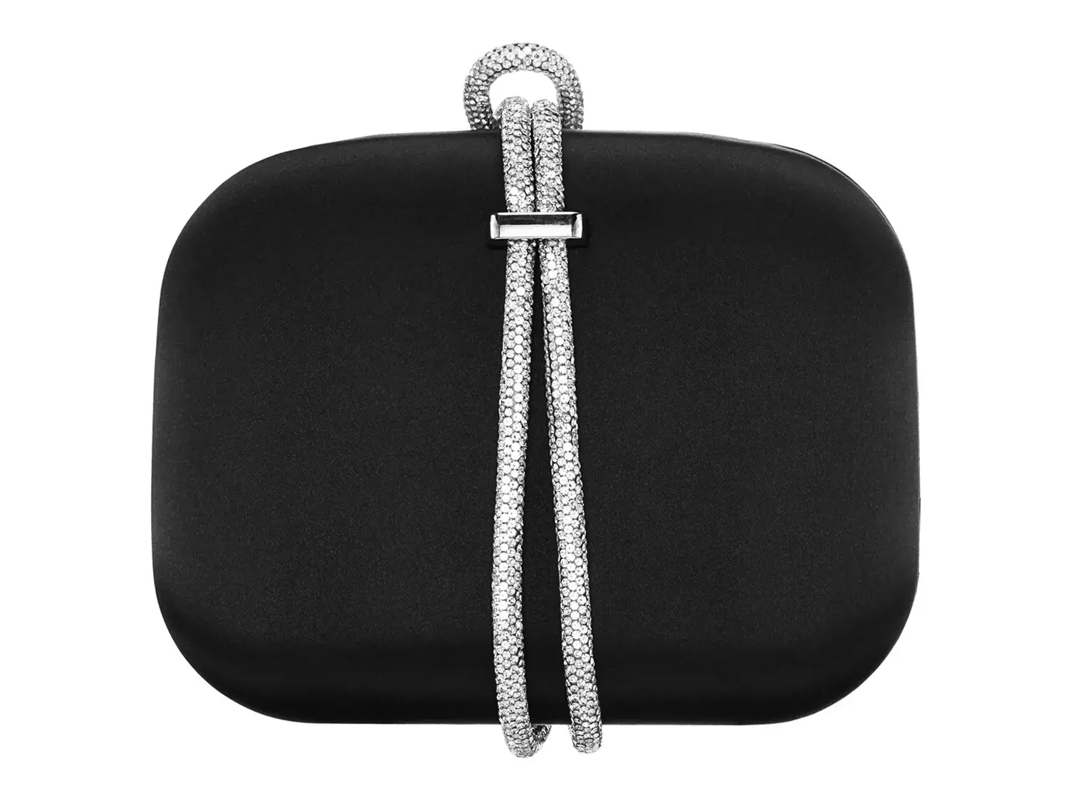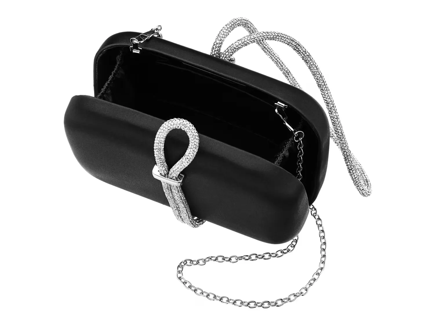 Будьте в курсе тенденций с клатчем Lauren от Nina. Эта компактная сумочка оснащена шнуром, украшенным стразами, который обвивает внешнюю поверхность и сияет со всех сторон.