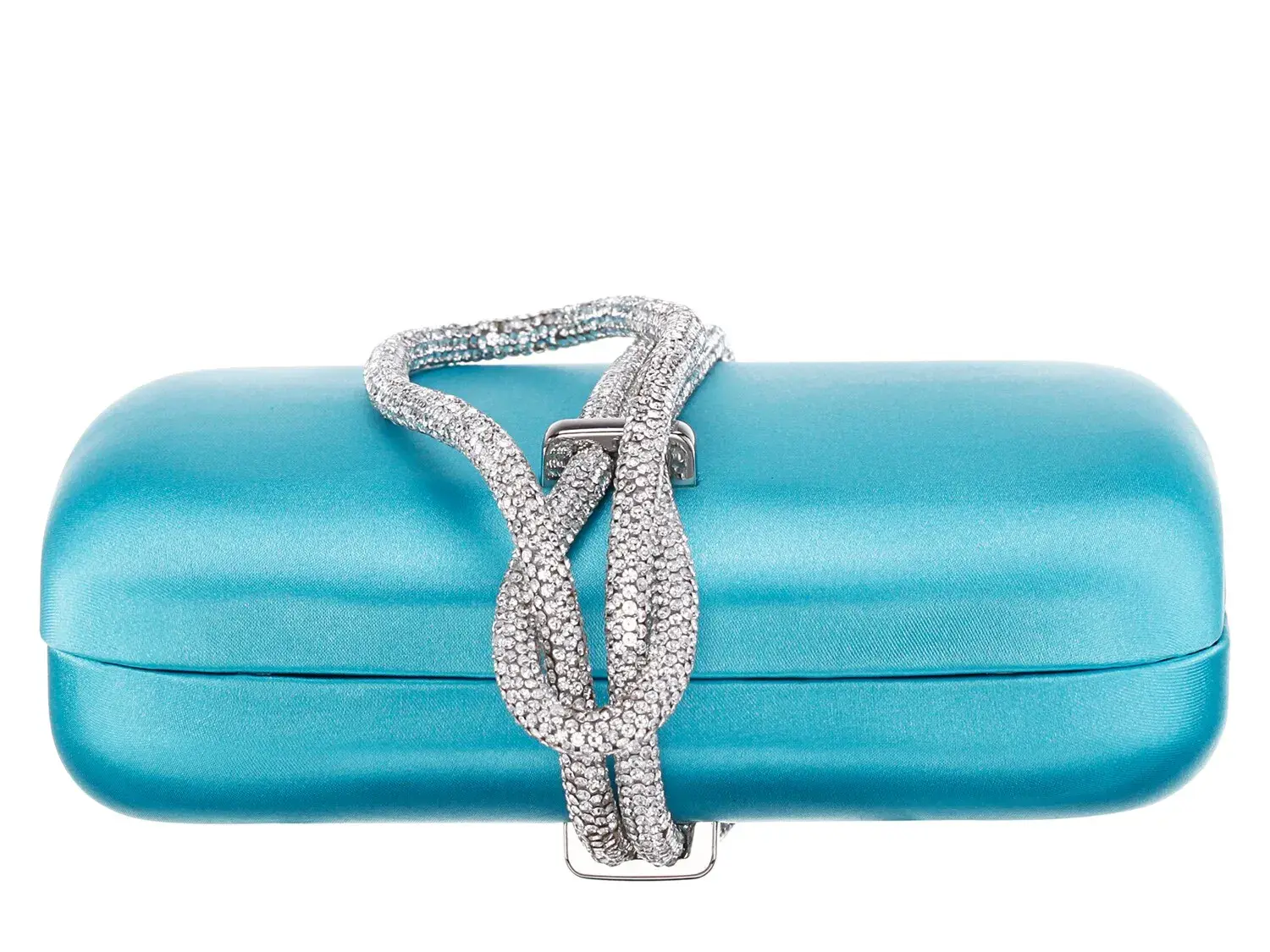 Будьте в курсе тенденций с клатчем Lauren от Nina. Эта компактная сумочка оснащена шнуром, украшенным стразами, который обвивает внешнюю поверхность и сияет со всех сторон.