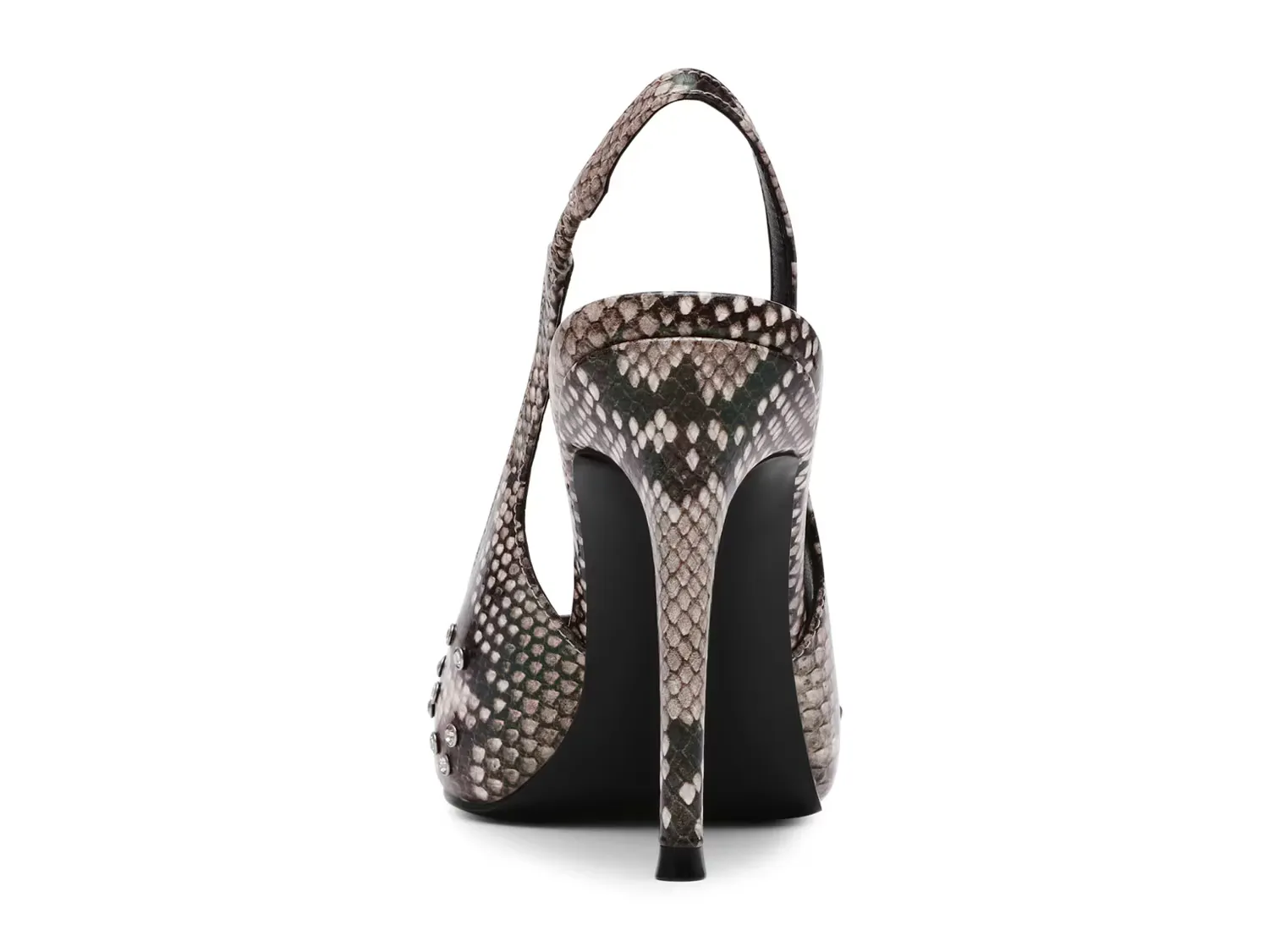 • Обтянутый каблук-шпилька 4,25 дюйма.