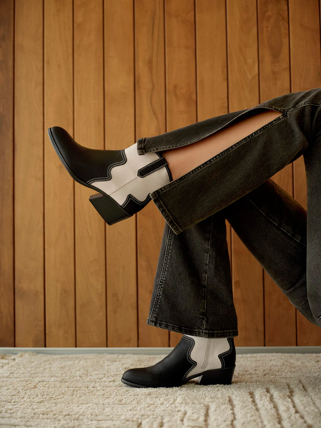 Покажите свою внутреннюю наездницу с ботинками в стиле вестерн Lasso от Dr. Scholl's. Эти ботильоны изготовлены из ткани, частично изготовленной из переработанных пластиковых бутылок, и стельки из пеноматериала BLOOM на 15 % растительного происхождения, обеспечивающего экологичность.