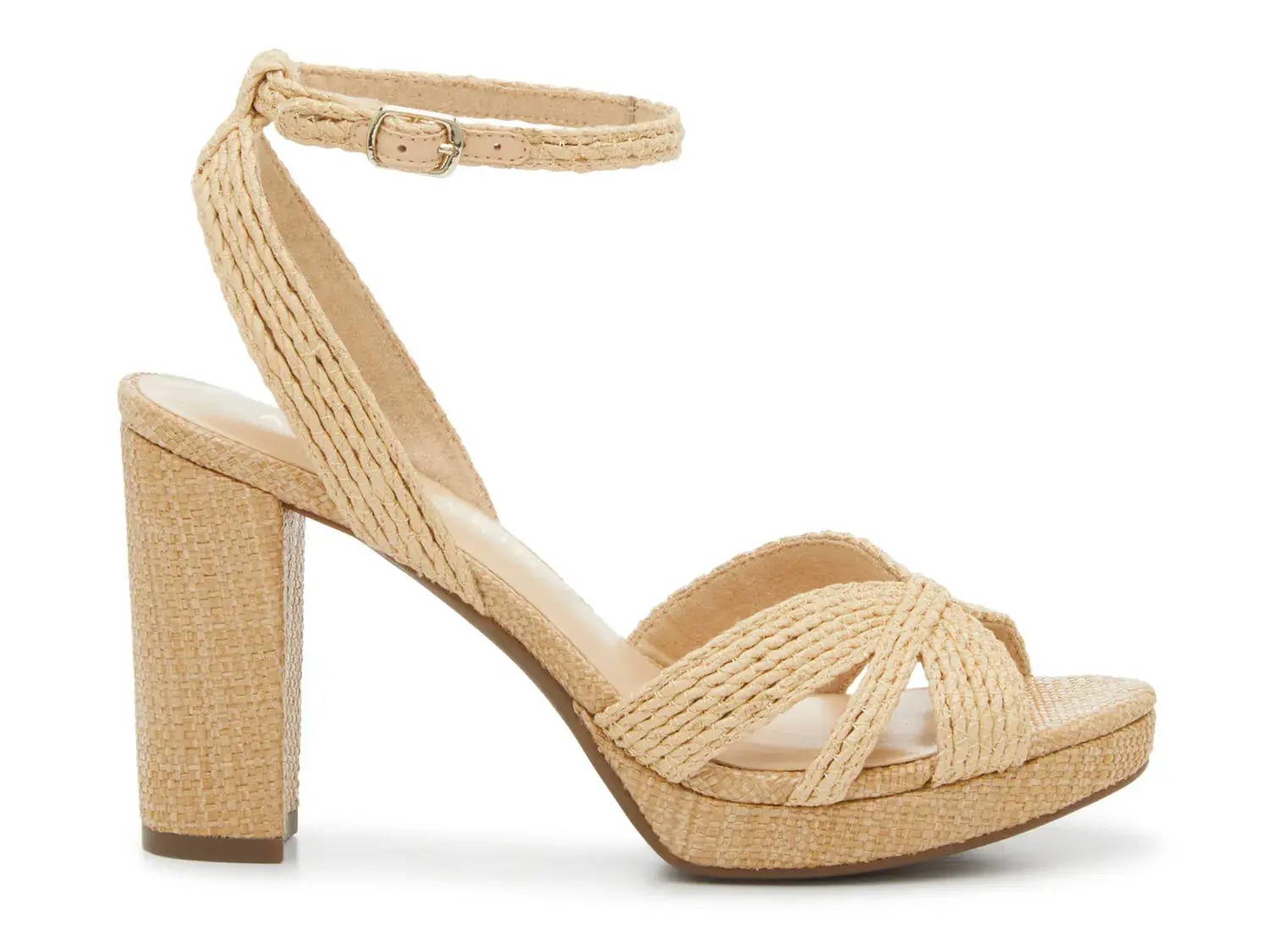 Наслаждайтесь стильным силуэтом с пляжной атмосферой, надевая сандалии Vex от Anne Klein. Эта пара, выполненная с верхом из рафии, дополнена плетеными деталями и перекрещивающимися ремешками.