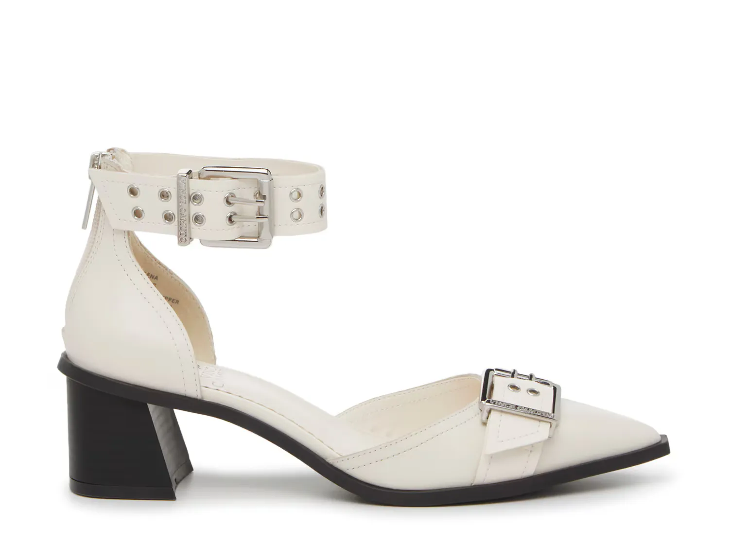 Элегантность сочетается с остротой в туфлях Kelena от Винса Камуто. Эта классическая пара имеет гладкий заостренный носок, модный блочный каблук и эффектный ремешок с пряжкой и привлекательными люверсами.