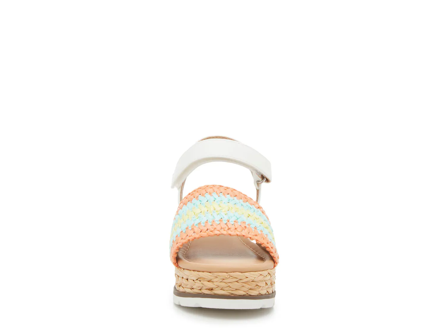 Сандалии Varsity добавят пастельных акцентов в любимый образ вашего ребенка! Эта красочная танкетка от DV от Dolce Vita дополнена стильным плетеным каблуком и ремешком, связанным крючком. В комплекте с надежной застежкой-липучкой, которая позволяет малышам легко дополнить свой образ..
