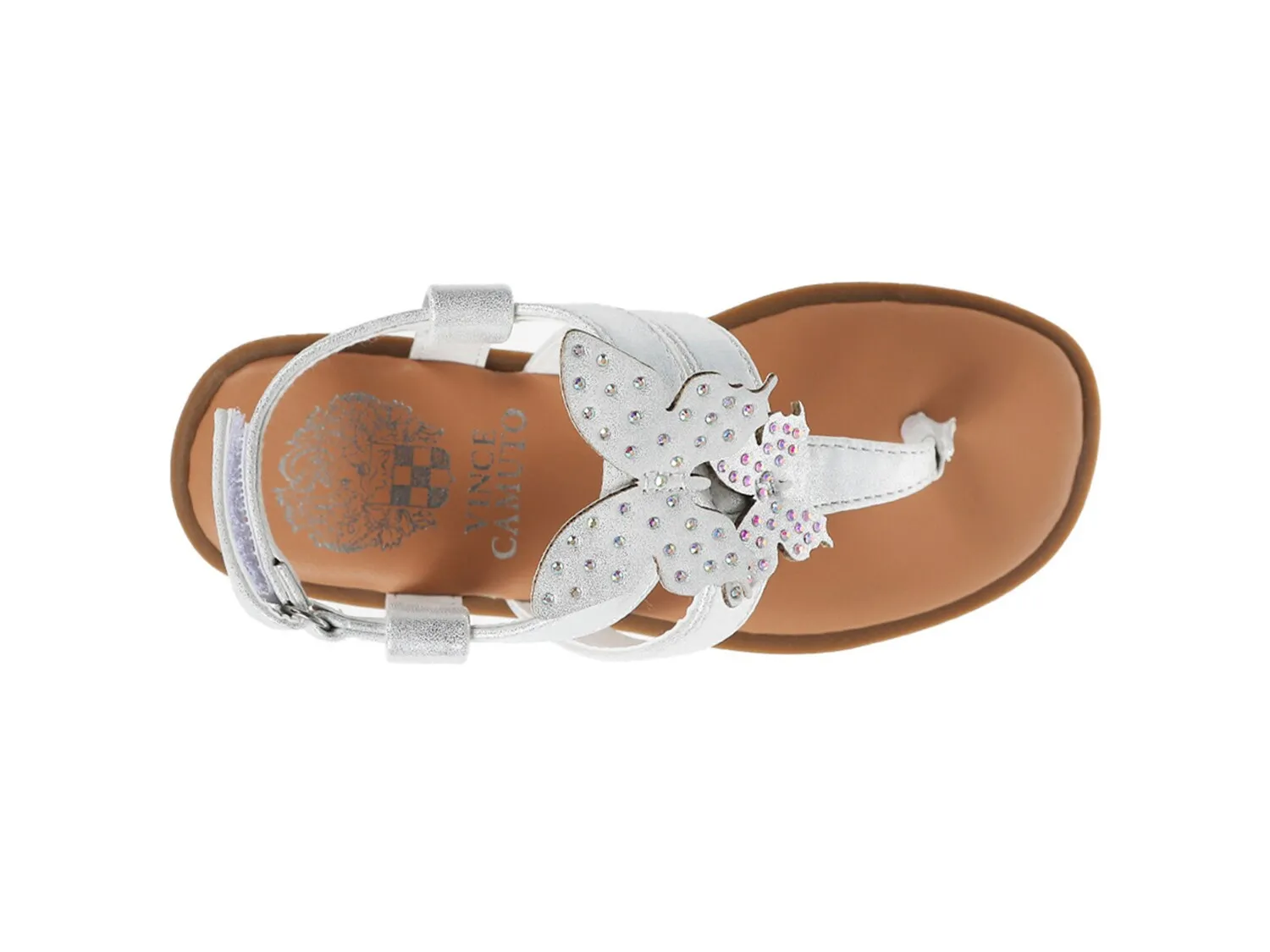 Сандалии Vince Camuto Kimana придают ее наряду очаровательный вид. Сандалии на липучке украшены отделкой-бабочкой с трехмерным вырезом, которая прекрасно сидит на ремешках сверху. Круглый открытый носок с ремешками обеспечивает удобную посадку.