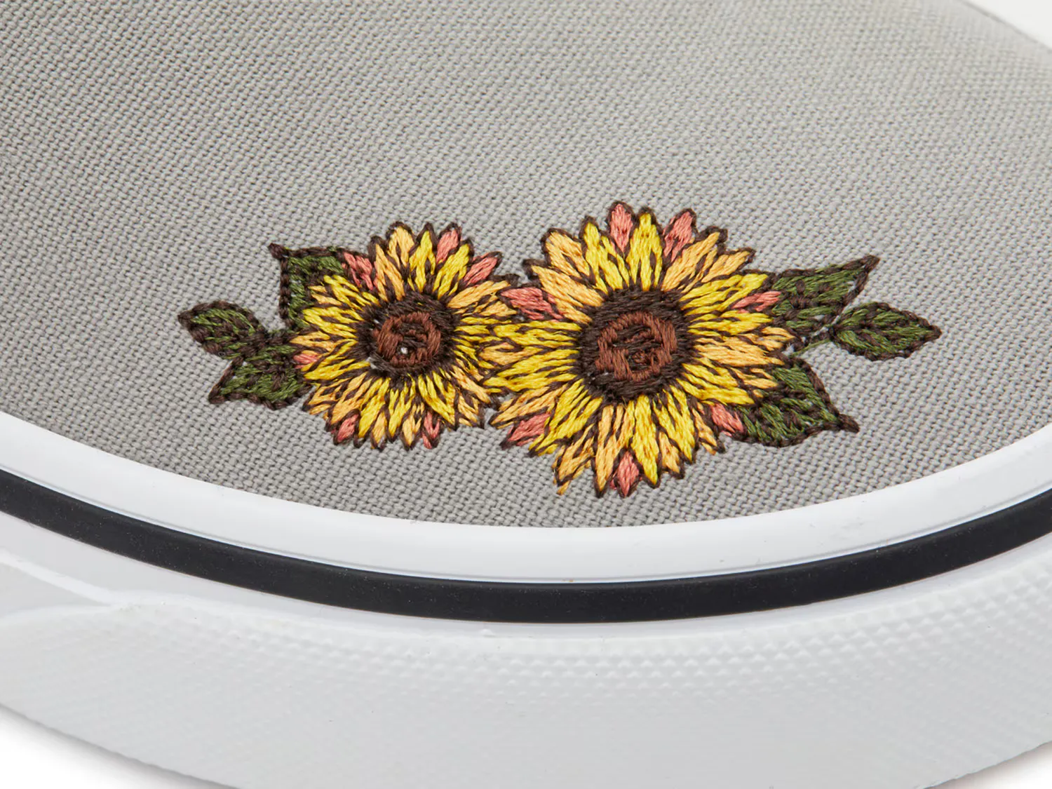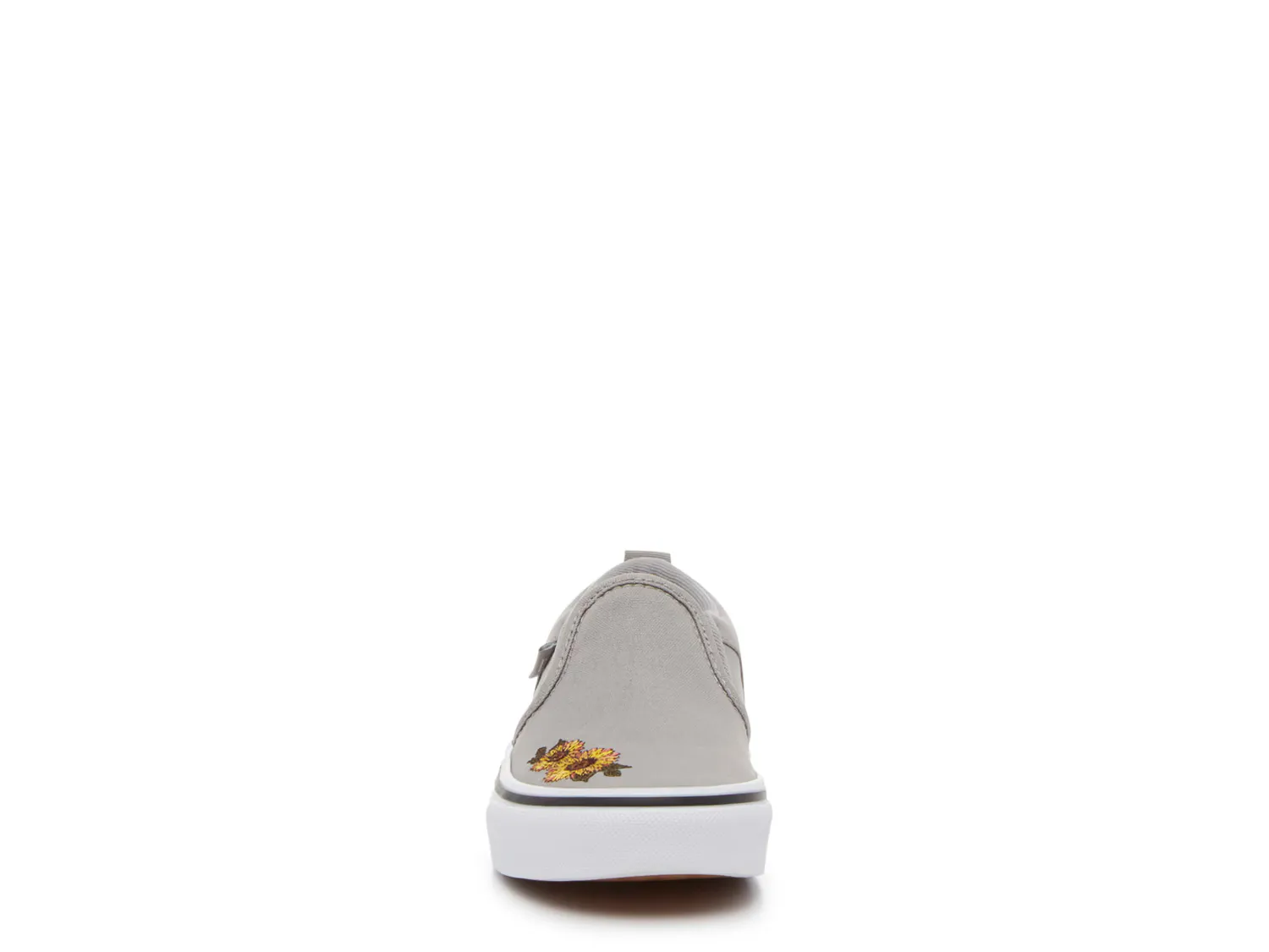 В спортивных и милых кроссовках-слипах Asher от Vans есть все, что любит ваш малыш. Вышитый подсолнух на носке придает этой паре из парусины свежий штрих.