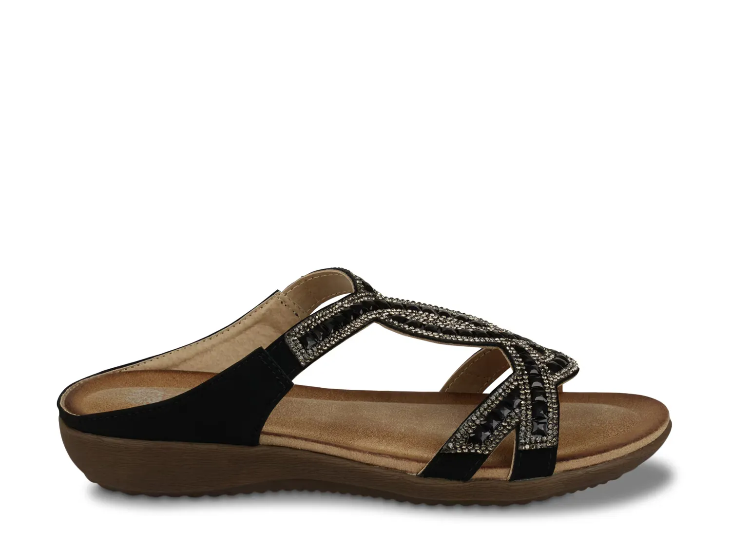 Сандалии Alora от GC Shoes станут вашей идеальной парой на лето, будь то пляжный отдых или бранч. В комплекте с витыми ремешками и сверкающими стразами для стильного образа, а также без застежки для легкого доступа.