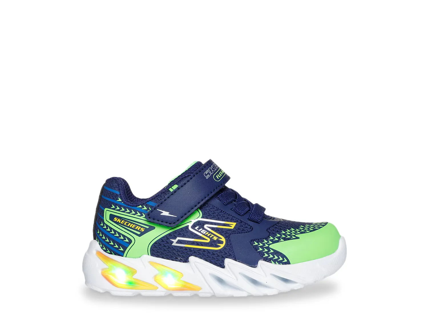 Ваш маленький гонщик освещает темноту в кроссовках S Lights Flex Bolt от Skechers. Благодаря подсвеченной межподошве, управляемой удобной кнопкой включения/выключения, эта пара раскрывает свою яркую сторону, когда они пожелают.