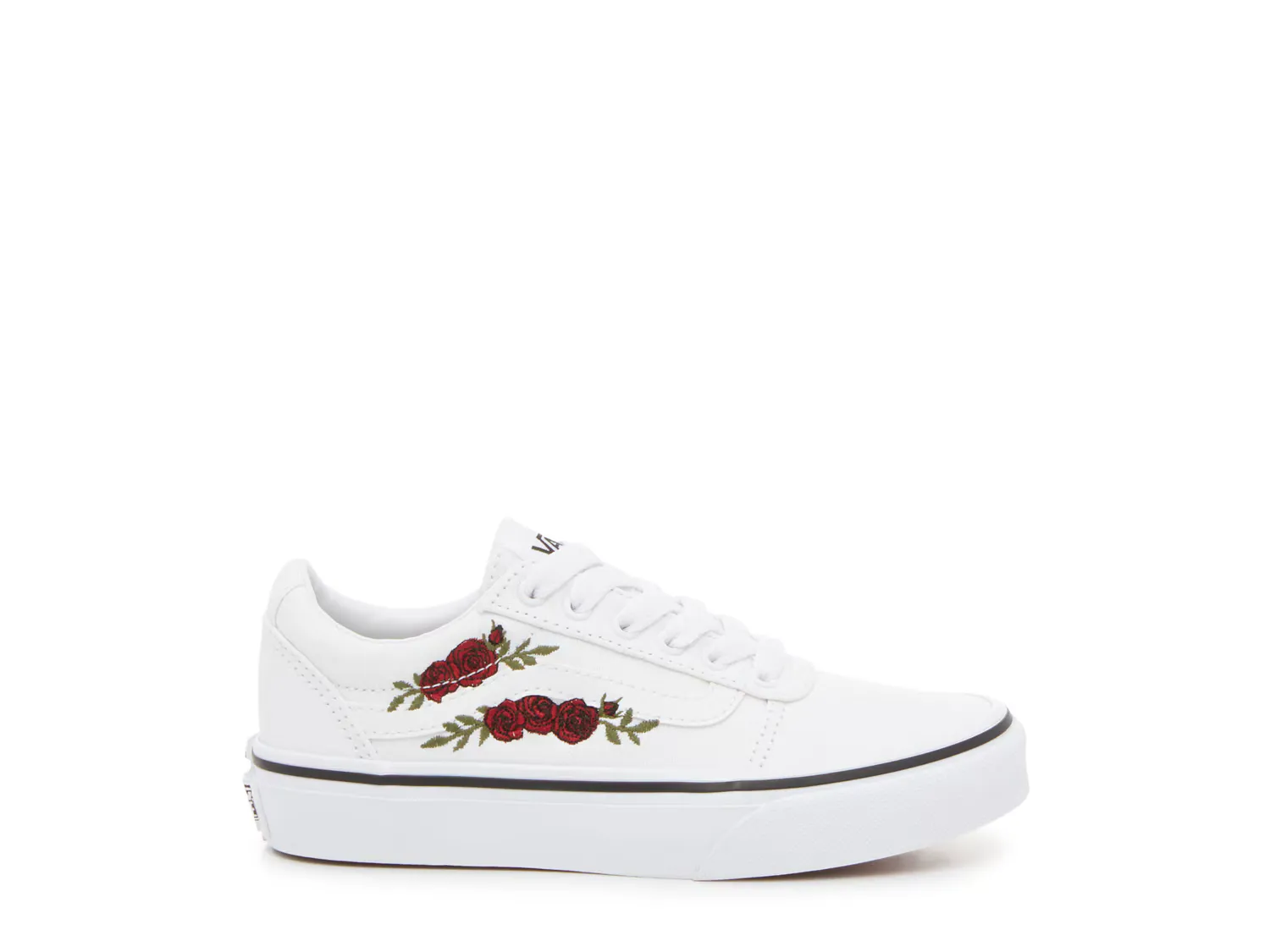 Ваш малыш будет чувствовать себя очень модно в кроссовках Ward от Vans. Эта шнуровка с вышитыми розами по бокам придает классическому силуэту веселую привлекательность.