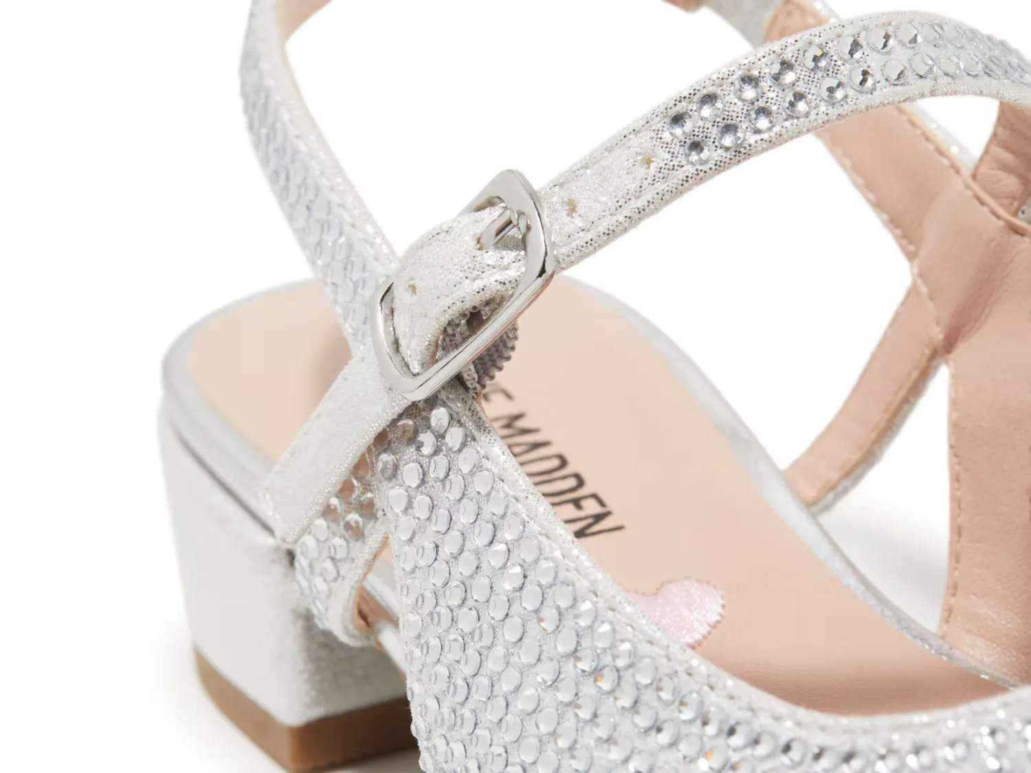 Ваш малыш достоин сиять! У них не возникнет проблем с этим в туфлях Belinda от Стива Мэддена. Эта модель с открытой пяткой украшена стразами, имеет металлический носок и серебристый оттенок.