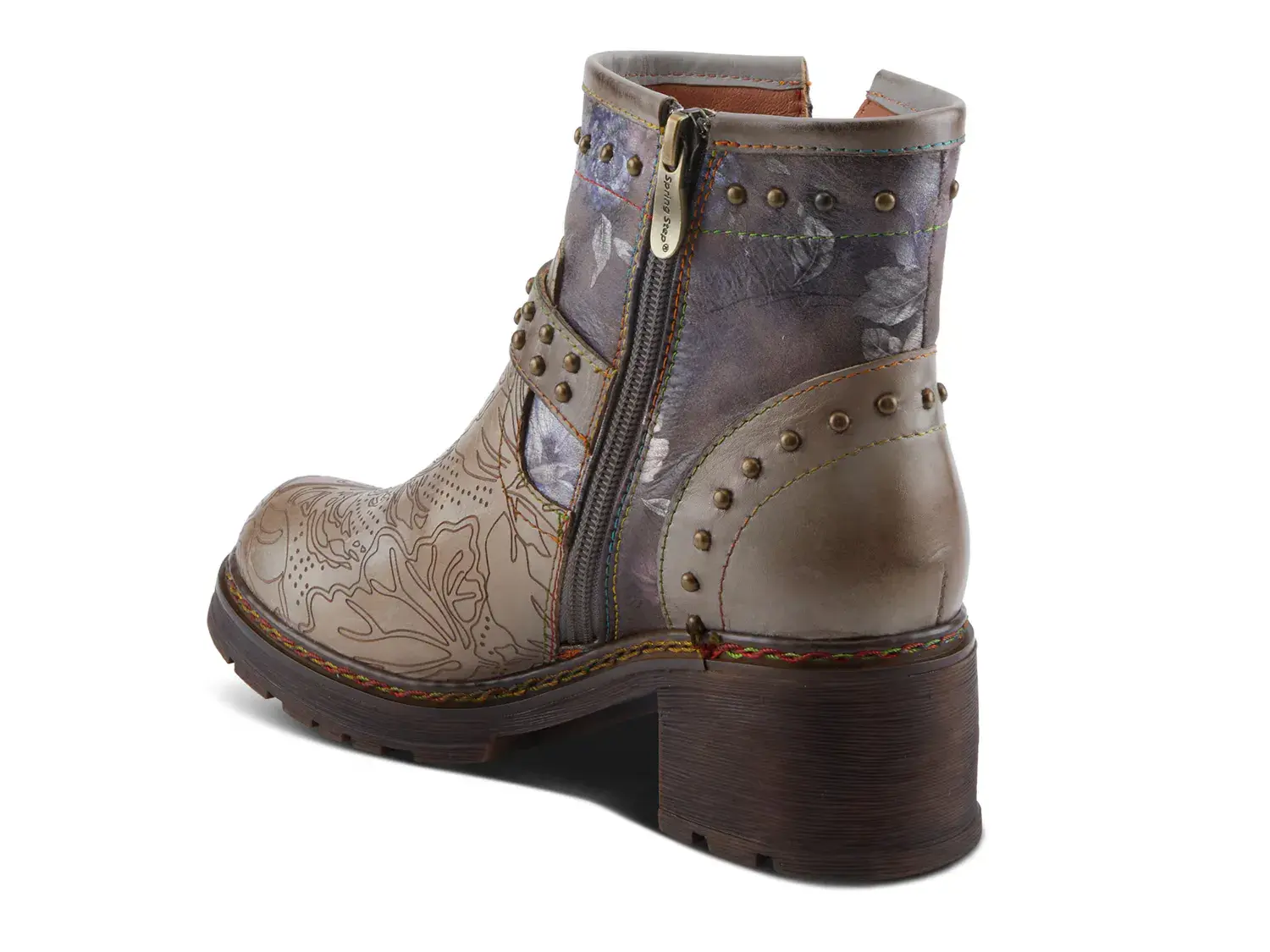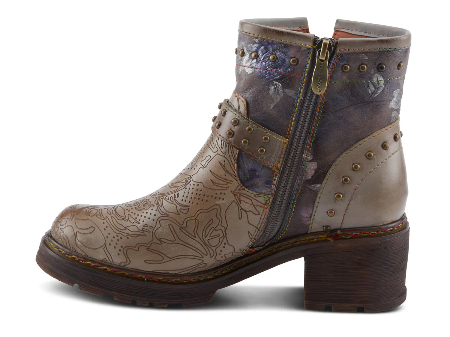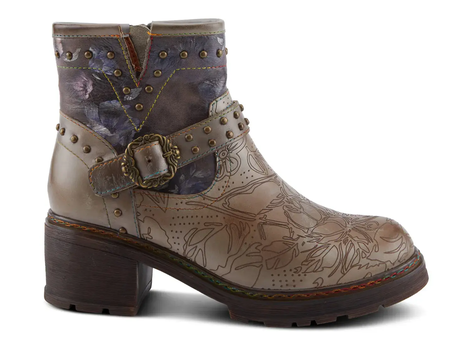 Сделайте изящный модный образ с ботильонами L'Artiste Branchout. Эти ботильоны украшают привлекательные расписанные и выгравированные вручную цветы, ветки и листья, а также декоративный пояс с заклепками и старинной латунной пряжкой. Заклепки на воротнике и пятке, а также переплетенная радужная строчка вокруг ранта придают поразительную привлекательность и долговечность, а резиновая подошва обеспечивает надежное сцепление.