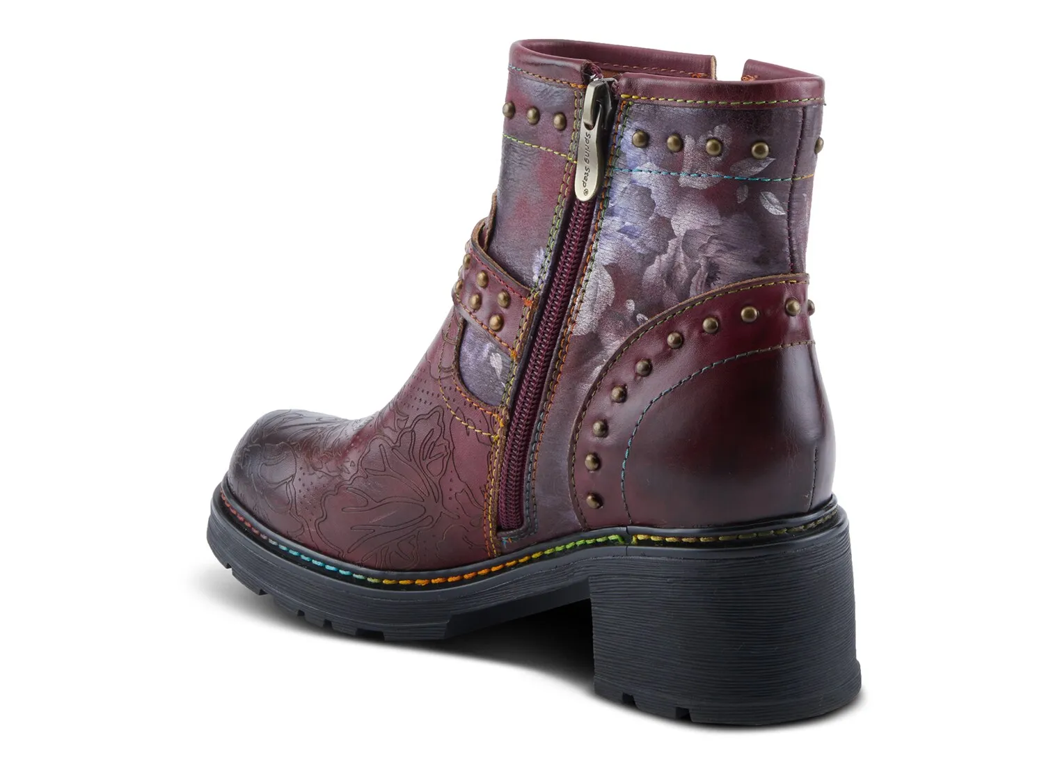 Сделайте изящный модный образ с ботильонами L'Artiste Branchout. Эти ботильоны украшают привлекательные расписанные и выгравированные вручную цветы, ветки и листья, а также декоративный пояс с заклепками и старинной латунной пряжкой. Заклепки на воротнике и пятке, а также переплетенная радужная строчка вокруг ранта придают поразительную привлекательность и долговечность, а резиновая подошва обеспечивает надежное сцепление.