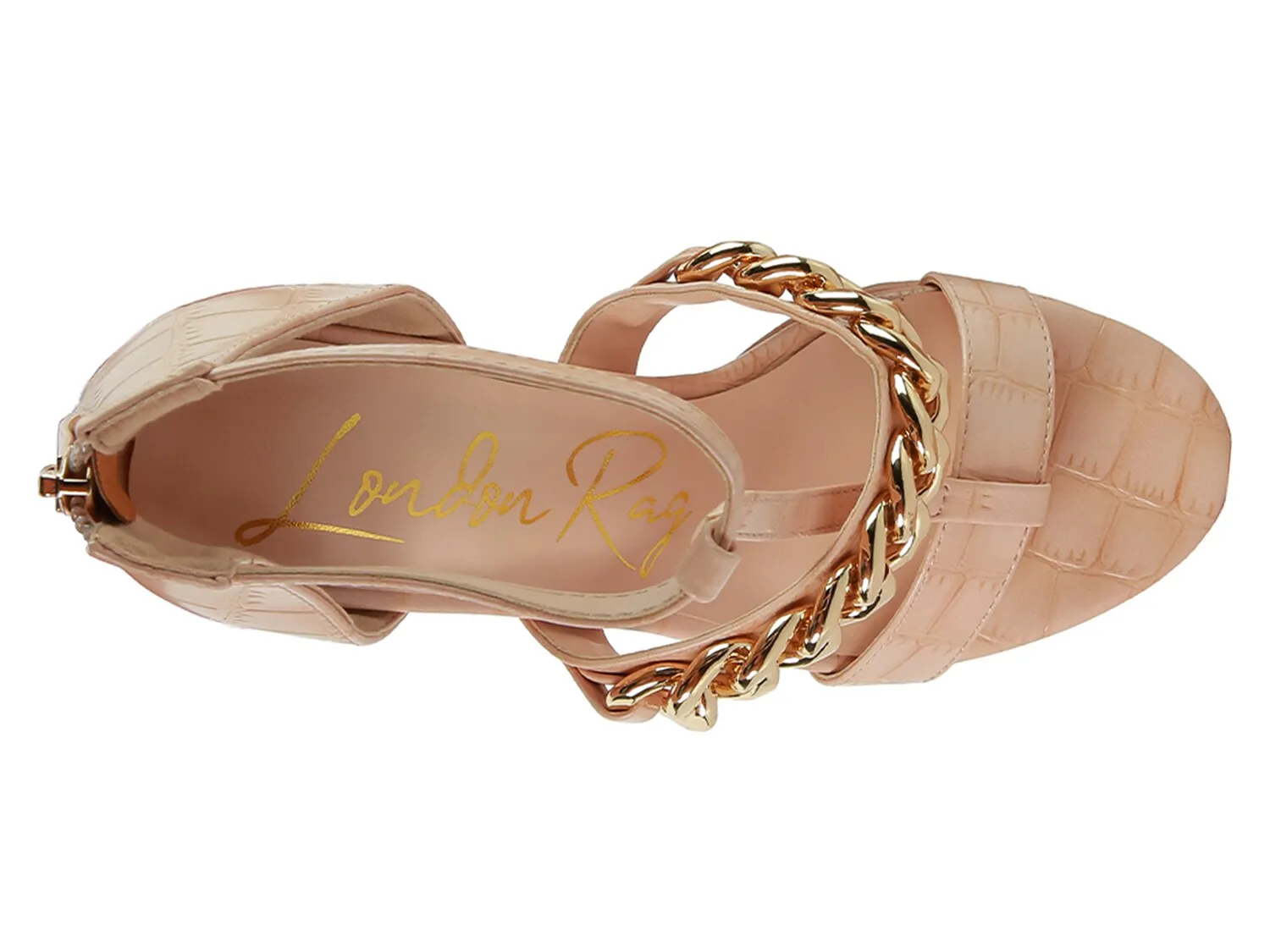 Сделайте потрясающий модный образ с потрясающими сандалиями на платформе Bonita от London Rag. Акцент на звеньях цепочки придает неоспоримую привлекательность сандалиям с молнией сзади, дополненным эргономичной стелькой и хорошо сконструированным каблуком.