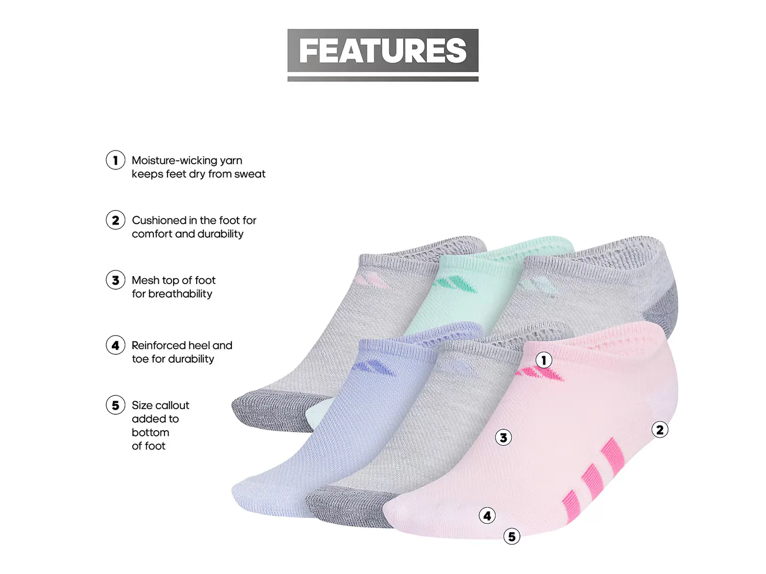 Носки Athletic Cushioned Kids' No Show Socks - 6 Pack Adidas, цвет multicolor 3 175₽