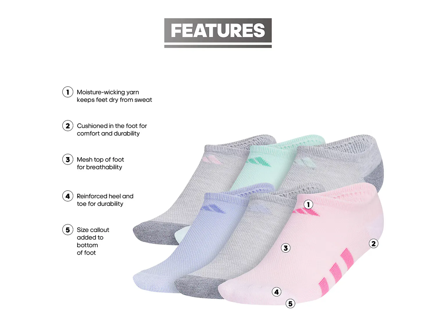 Носки Athletic Cushioned Kids' No Show Socks - 6 Pack Adidas, цвет multicolor 3 160₽