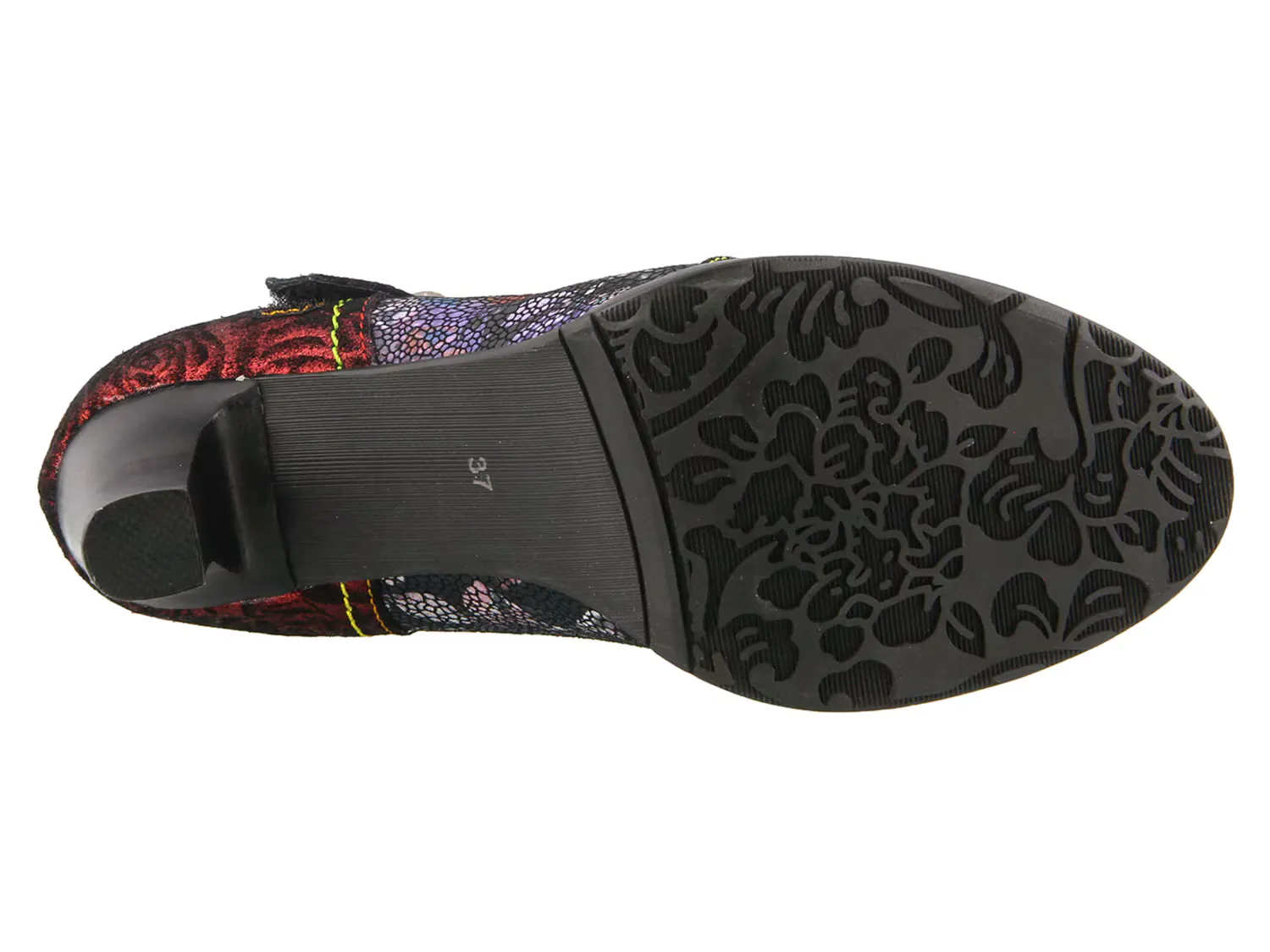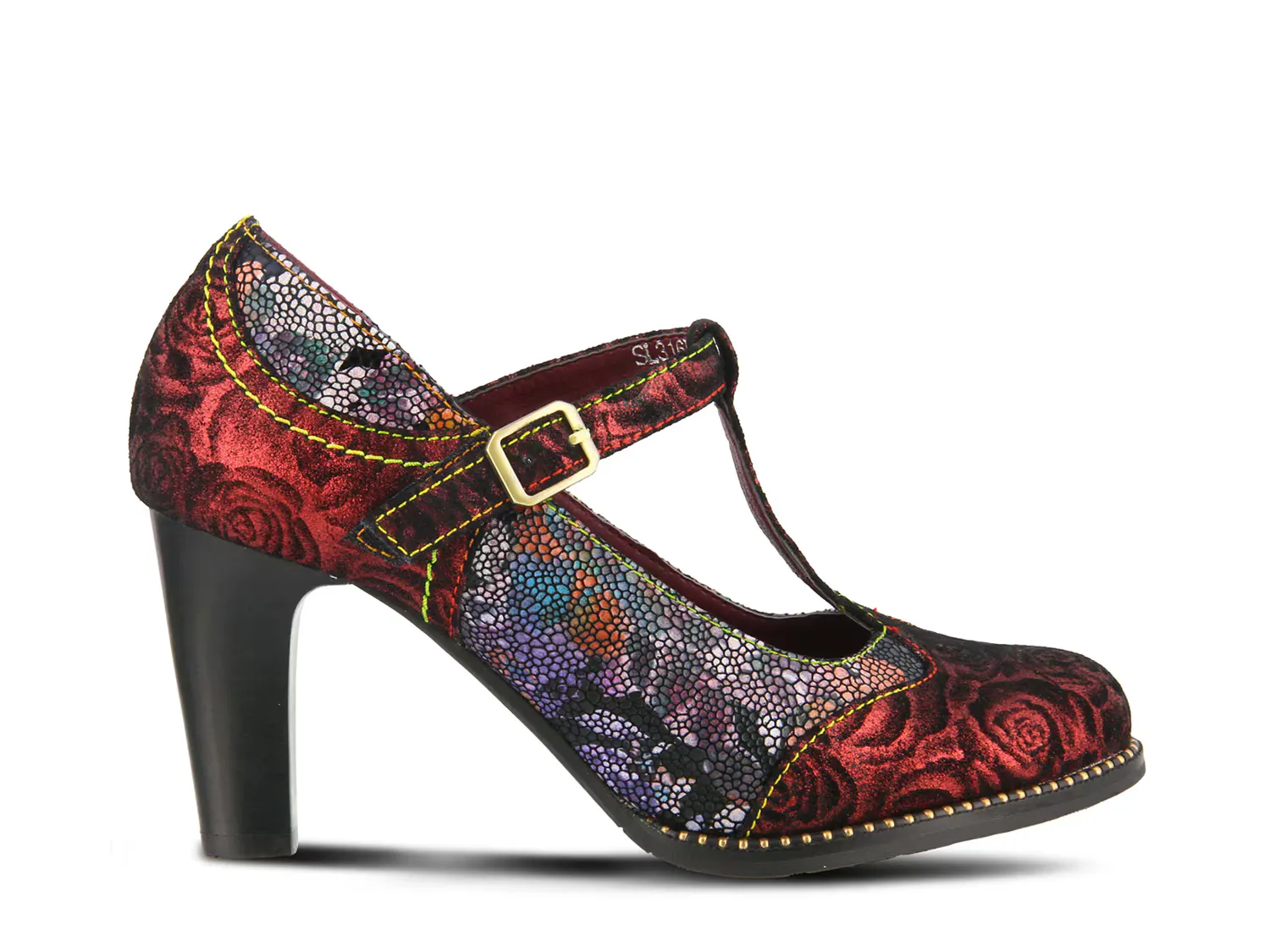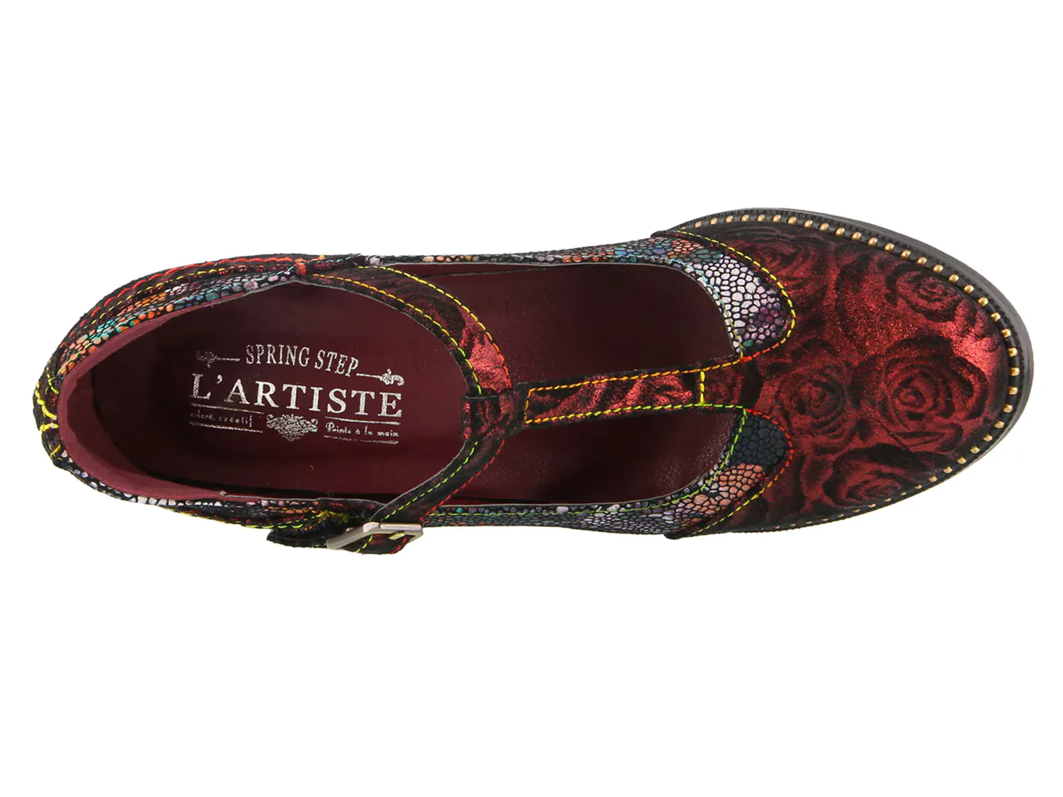 Сделайте свой наряд эффектным с помощью туфель Mazie от L'Artiste от Spring Step. Эти туфли-лодочки с Т-образным ремешком имеют кожаный верх с цветочным принтом и межподошву с шипами, что придает им смелости.