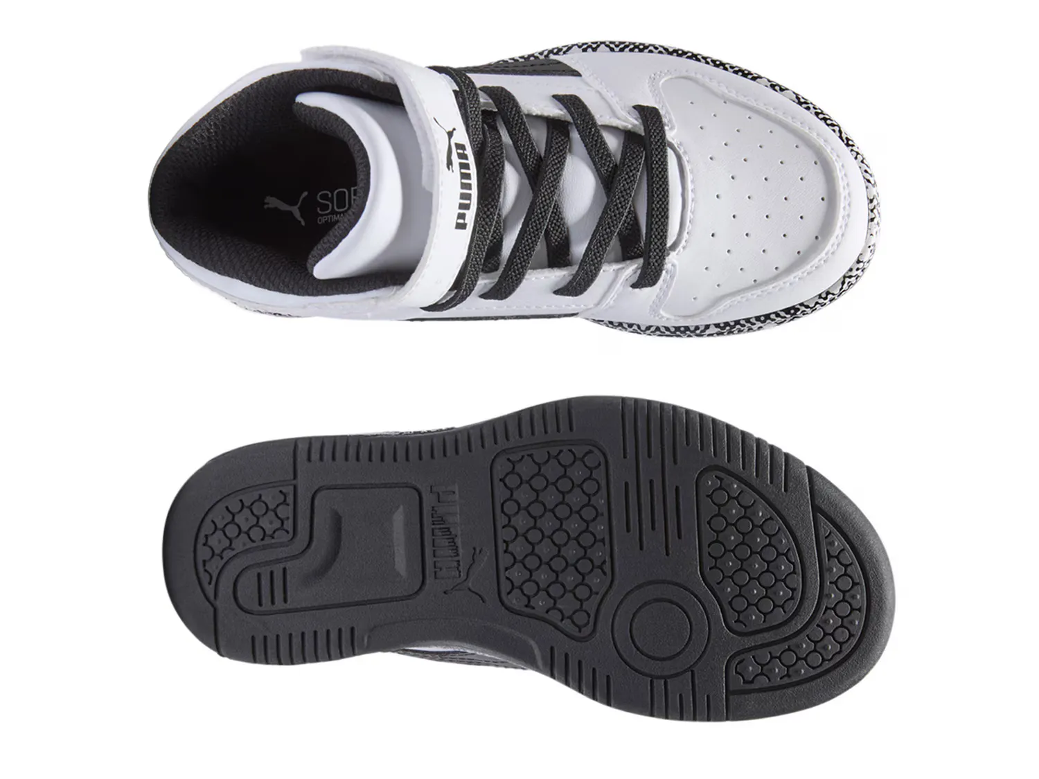 Вашему маленькому чемпиону понравятся культовые баскетбольные кроссовки Puma Rebound Layup. Эта обувь на шнуровке, выполненная из искусственной кожи с перфорированной союзкой и логотипом Formstrip, а также прочной чашечкой, создающей эффектный вид, также оснащена стелькой SoftFoam+, обеспечивающей невероятную амортизацию и оптимальный комфорт в течение всего дня.