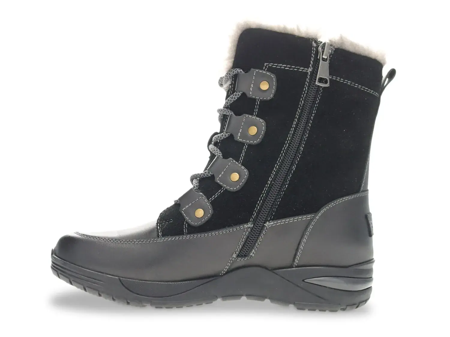 Почувствуйте стиль и непревзойденный комфорт ботинок Dulcie от Propet. Кожаный верх дополнен защитой Scotchgard, замшевым голенищем в стиле мокасин, теплым воротником из искусственного меха и ворсовой подкладкой. Эти ботинки на молнии оснащены пеной с открытыми порами для предотвращения пронации, прокладкой из этиленвинилацетата для индивидуальной посадки, пеной DuroCloud для мгновенного комфорта и гибкой резиновой подошвой, что делает их незаменимыми в сезоне.