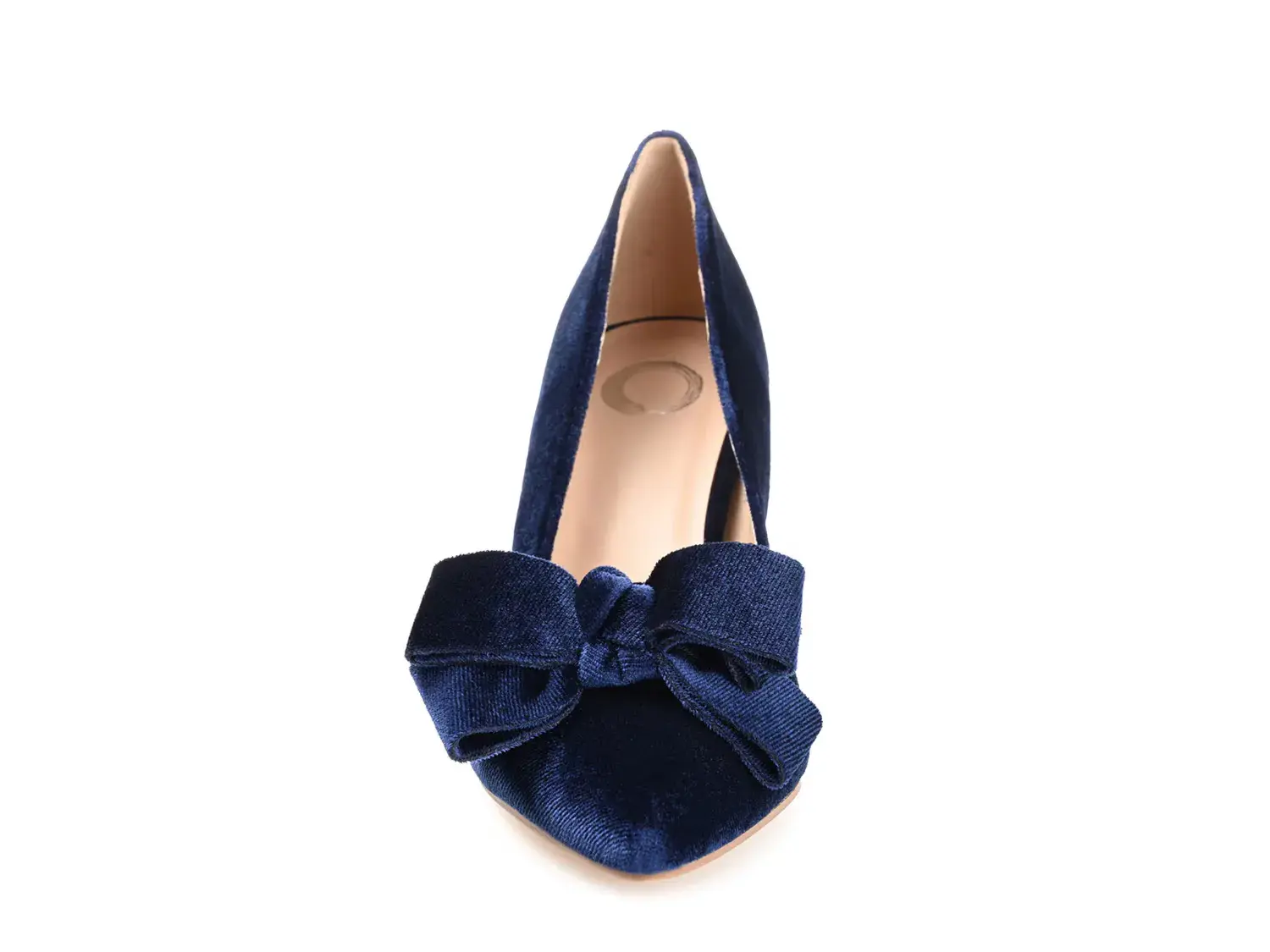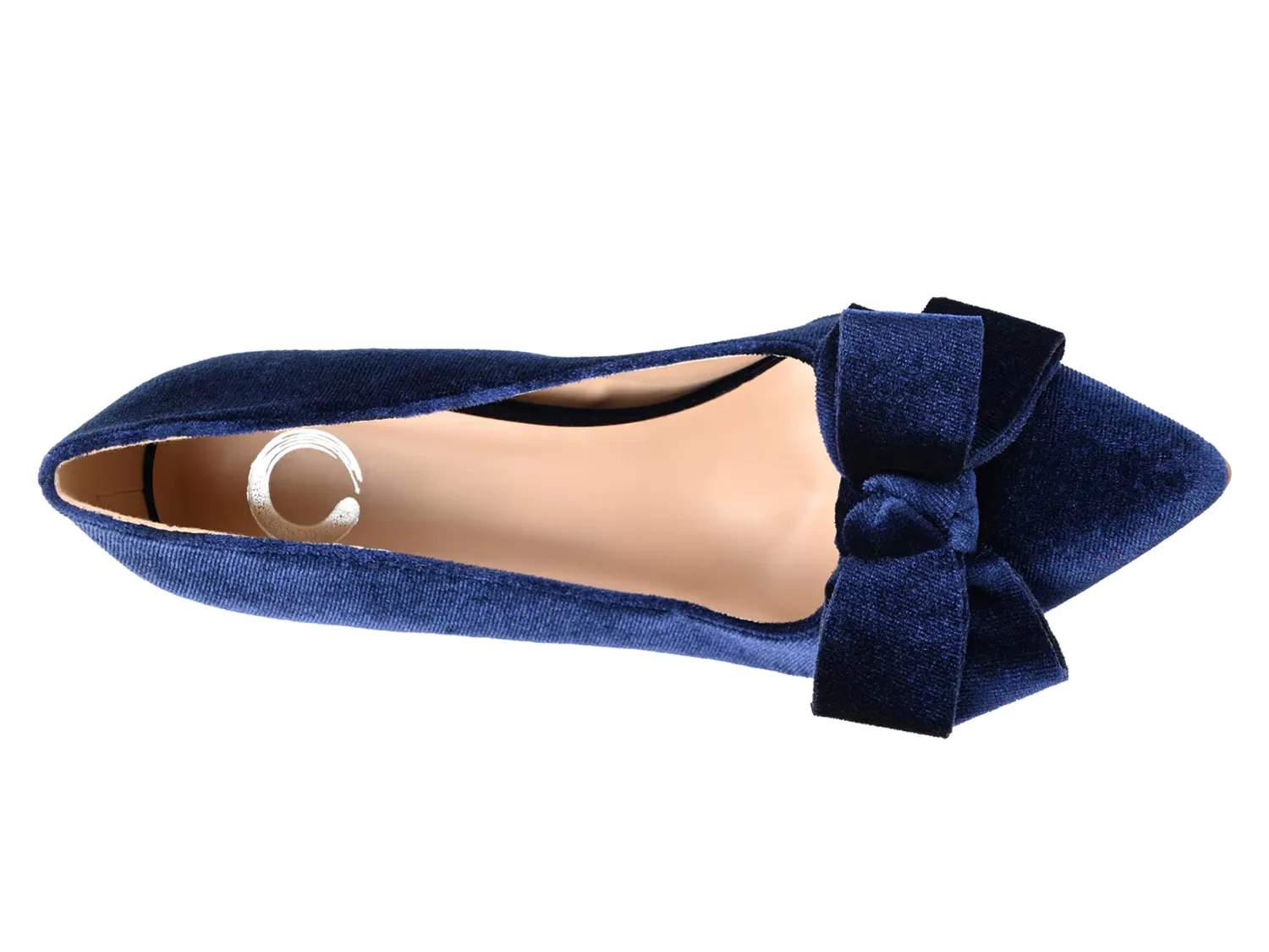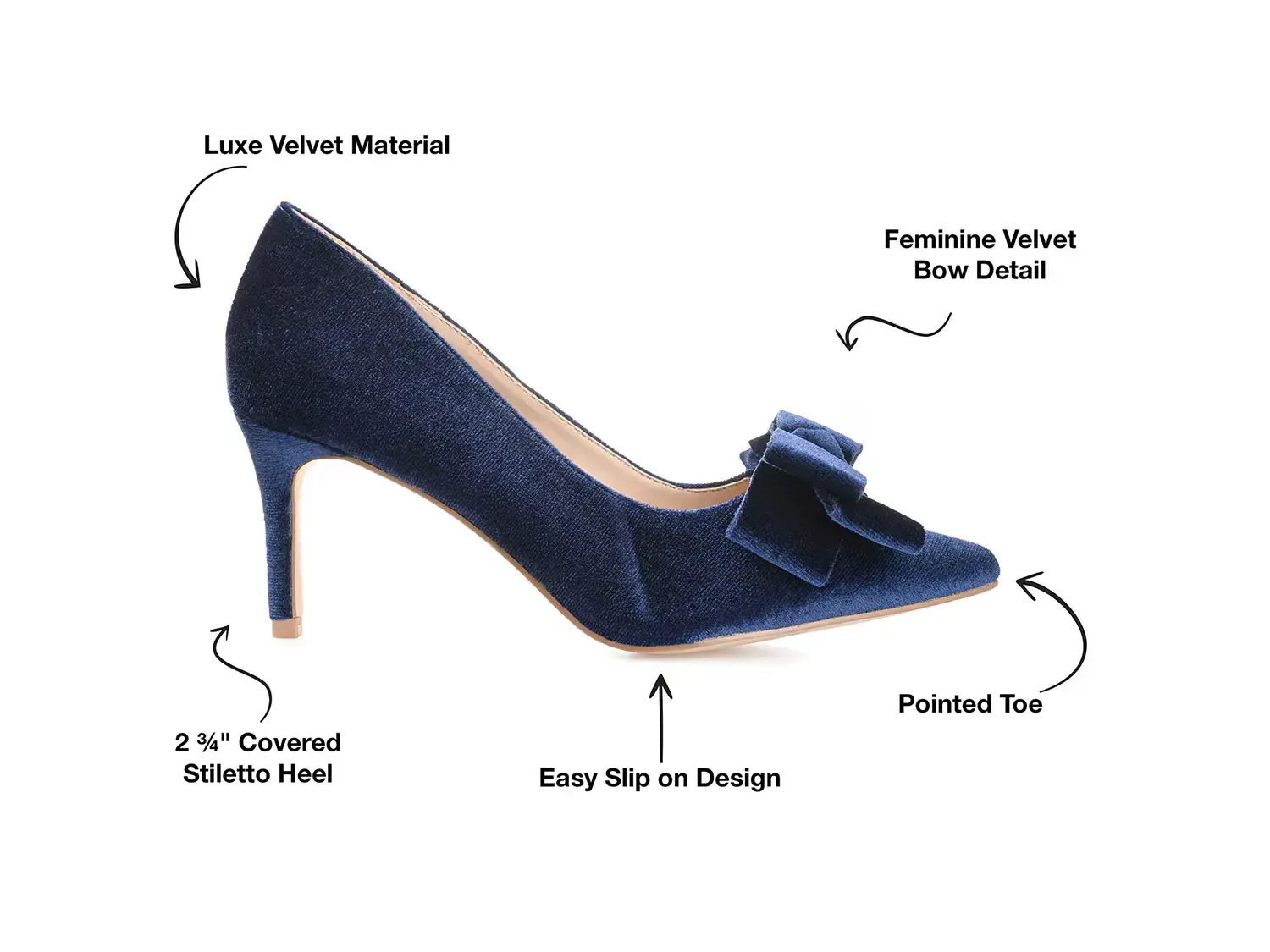 Верх из мягкой бархатной ткани, украшенный бантиком на носке, придает лодочкам Crystol из коллекции Journee великолепный стиль. Эти туфли-лодочки без шнуровки имеют заостренный носок и мягкую стельку для обеспечения максимального комфорта.