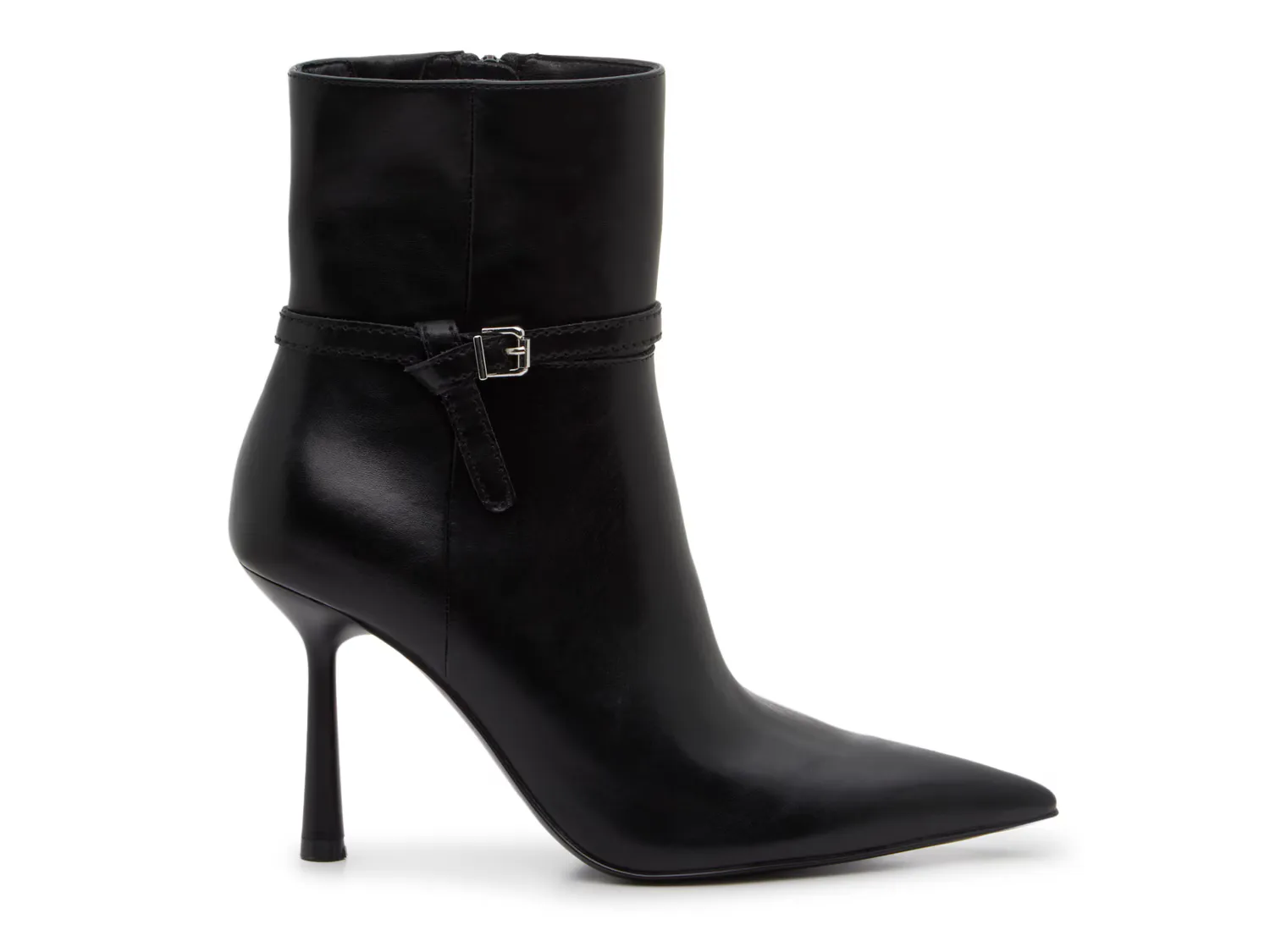 Привлеките внимание потрясающими ботильонами Carolina от Nine West. Высокий узкий каблук с декоративной пряжкой и привлекательный острый носок, придающий эффектности.