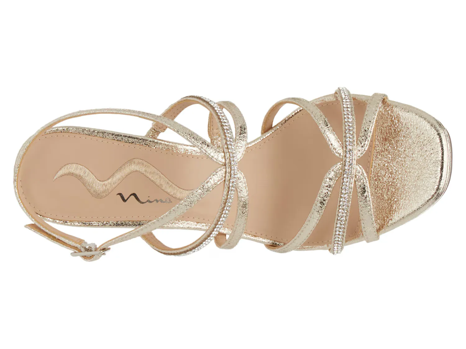 Сияйте стилем в сандалиях Sonali от Nina. Эта пара с ремешками подчеркнута блестящим металлическим оттенком и сверкающими деталями из стразов, которые подчеркнут любой ансамбль. В комплекте с современным дизайном с квадратным носком и прочным блочным каблуком, который подчеркнет ваш образ и будет всегда в тренде.