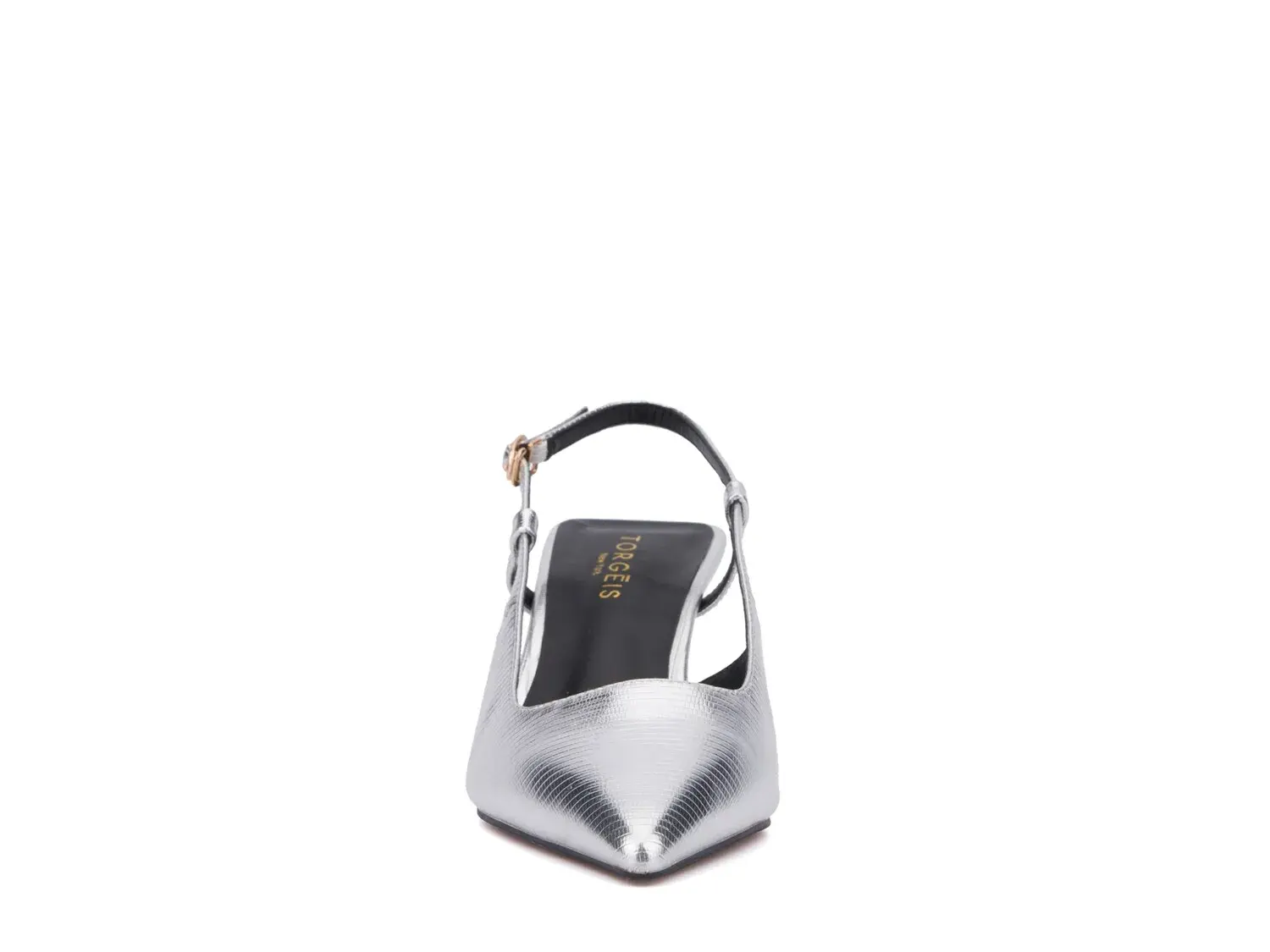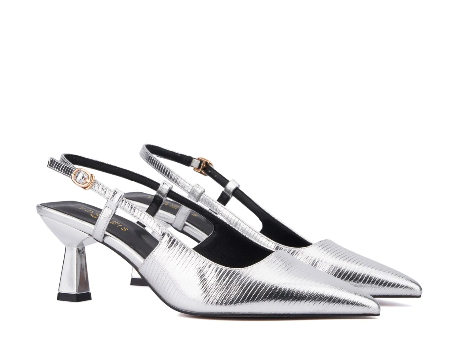 Привнесите нотки винтажного стиля в свой гардероб с помощью туфель-лодочек TORGEIS Val. Классический силуэт с открытой пяткой, острый носок и скульптурный каблук придадут яркий акцент вечернему образу.