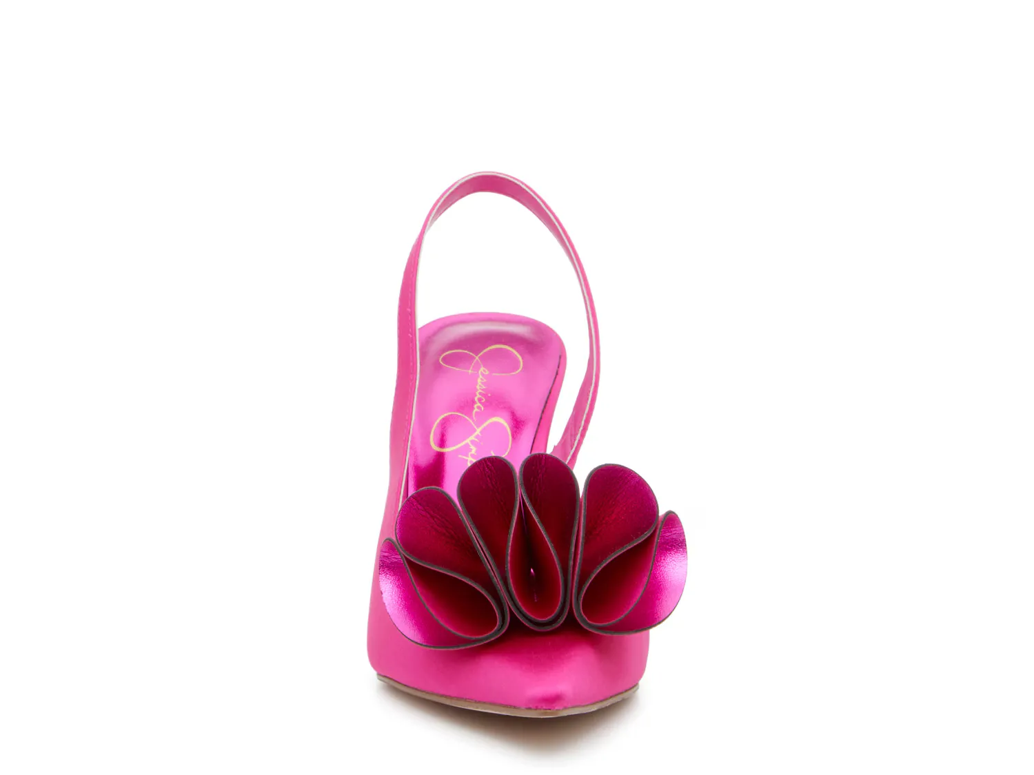 Завершите свой образ уникальным изяществом. Туфли-лодочки Febrindi от Jessica Simpson имеют силуэт с открытой пяткой и гладкий расклешенный носок. Модель дополнена рюшами, которые добавляют привлекательный акцент.