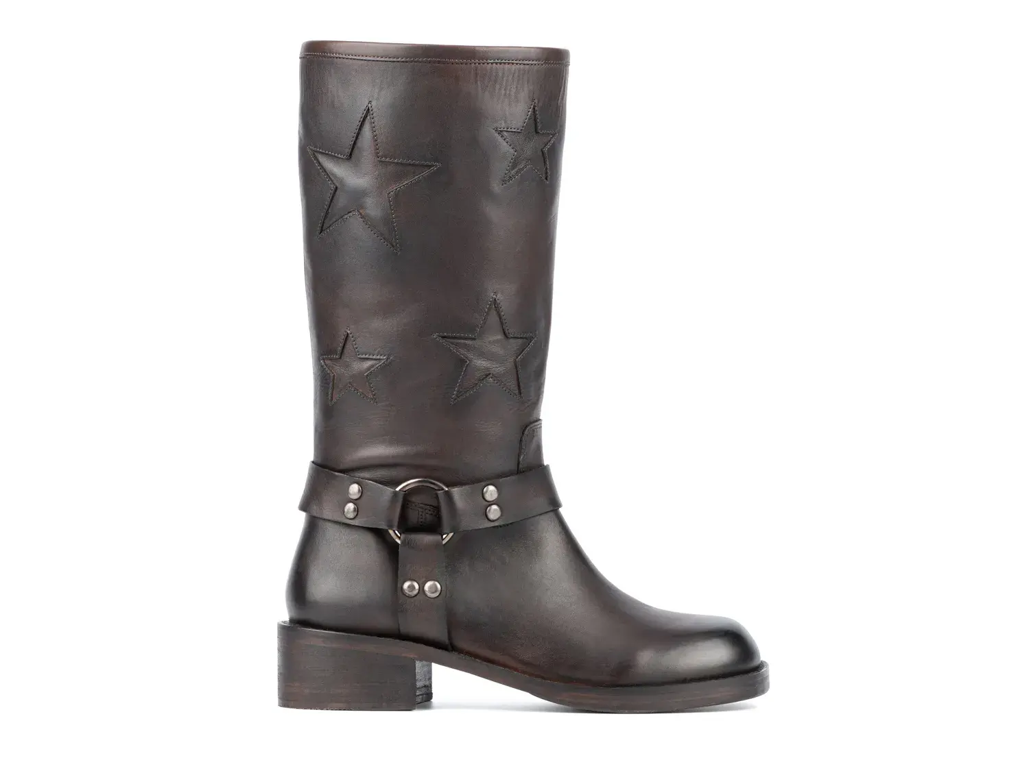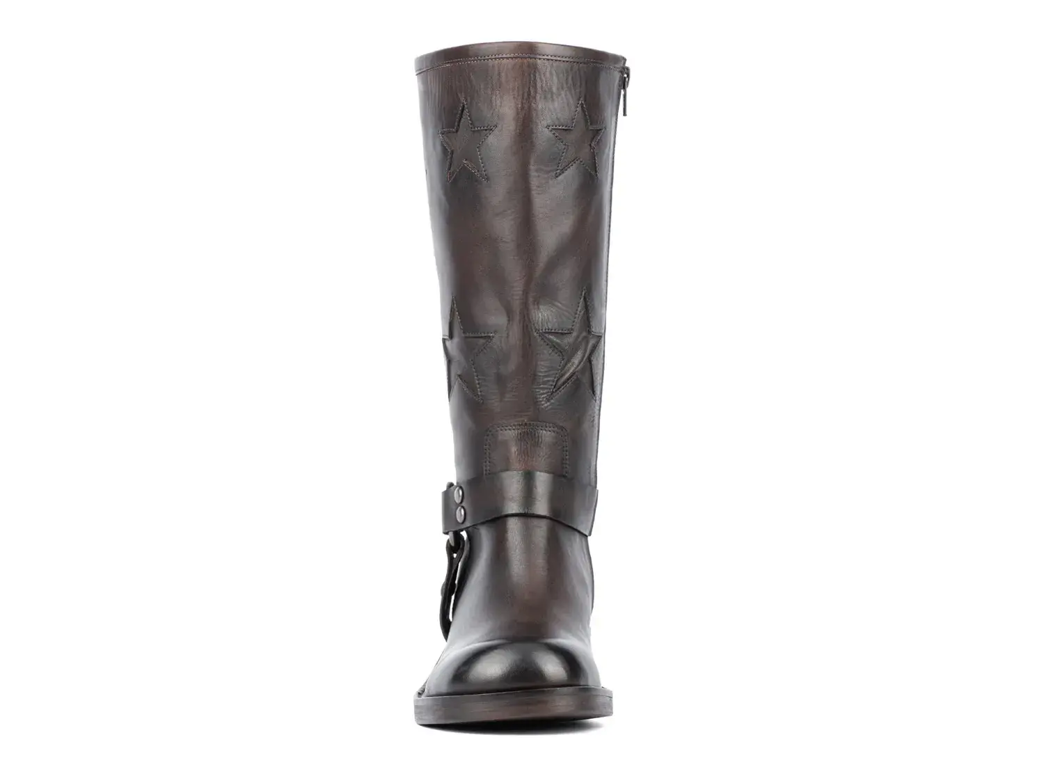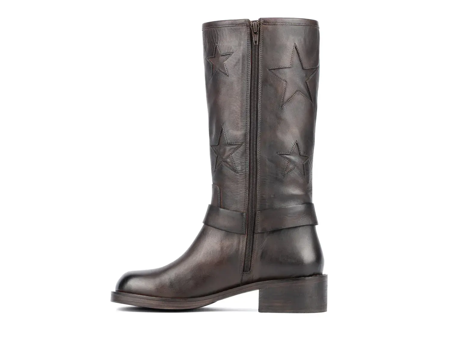 Воплотите модный стиль в ботинках Mathilde от Vintage Foundry. Эти кожаные ботинки украшены аппликациями в виде звезд на голенище, привлекающими внимание. Детали ремня с уплотнительным кольцом добавляют роскоши, а полированные детали на носке и пятке остаются очаровательными.