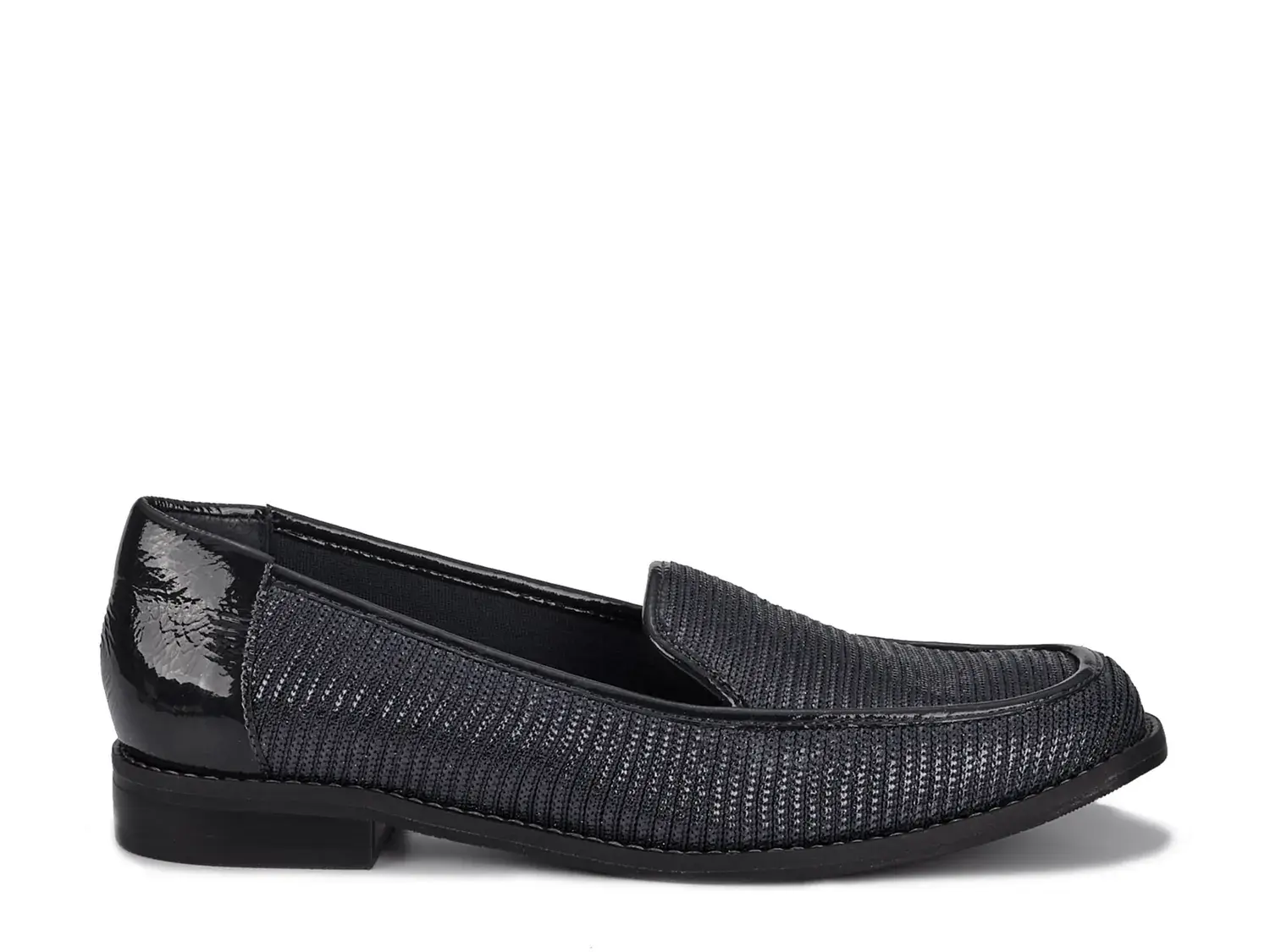 • Верх из эластичной ткани и лакированной кожи.