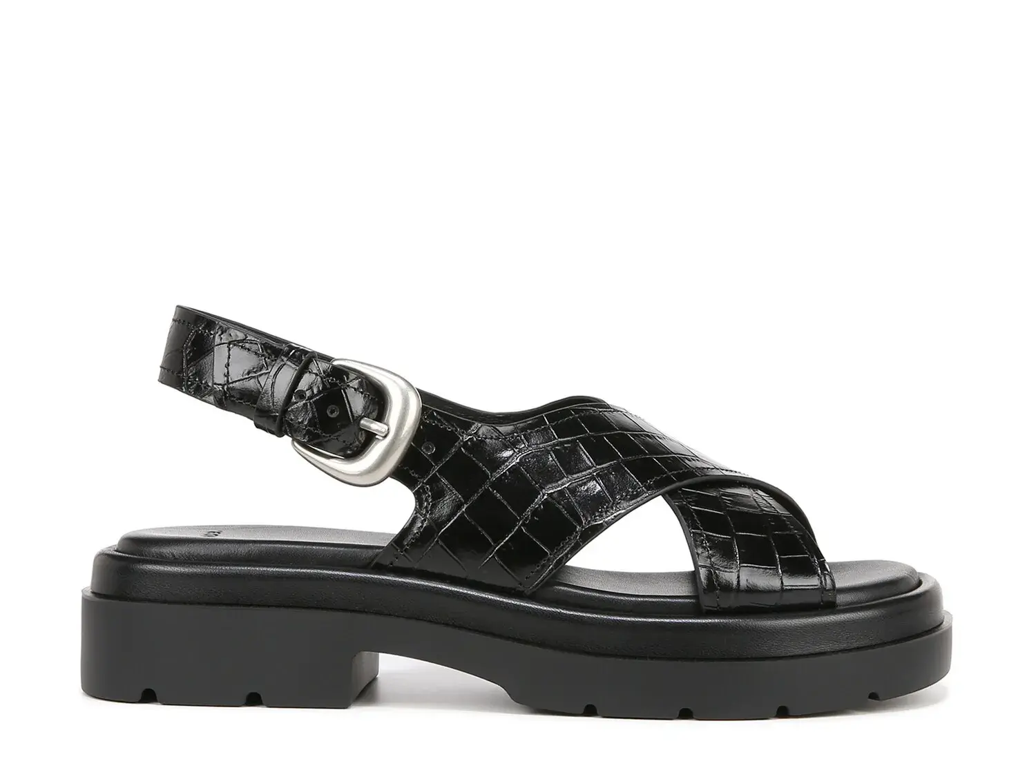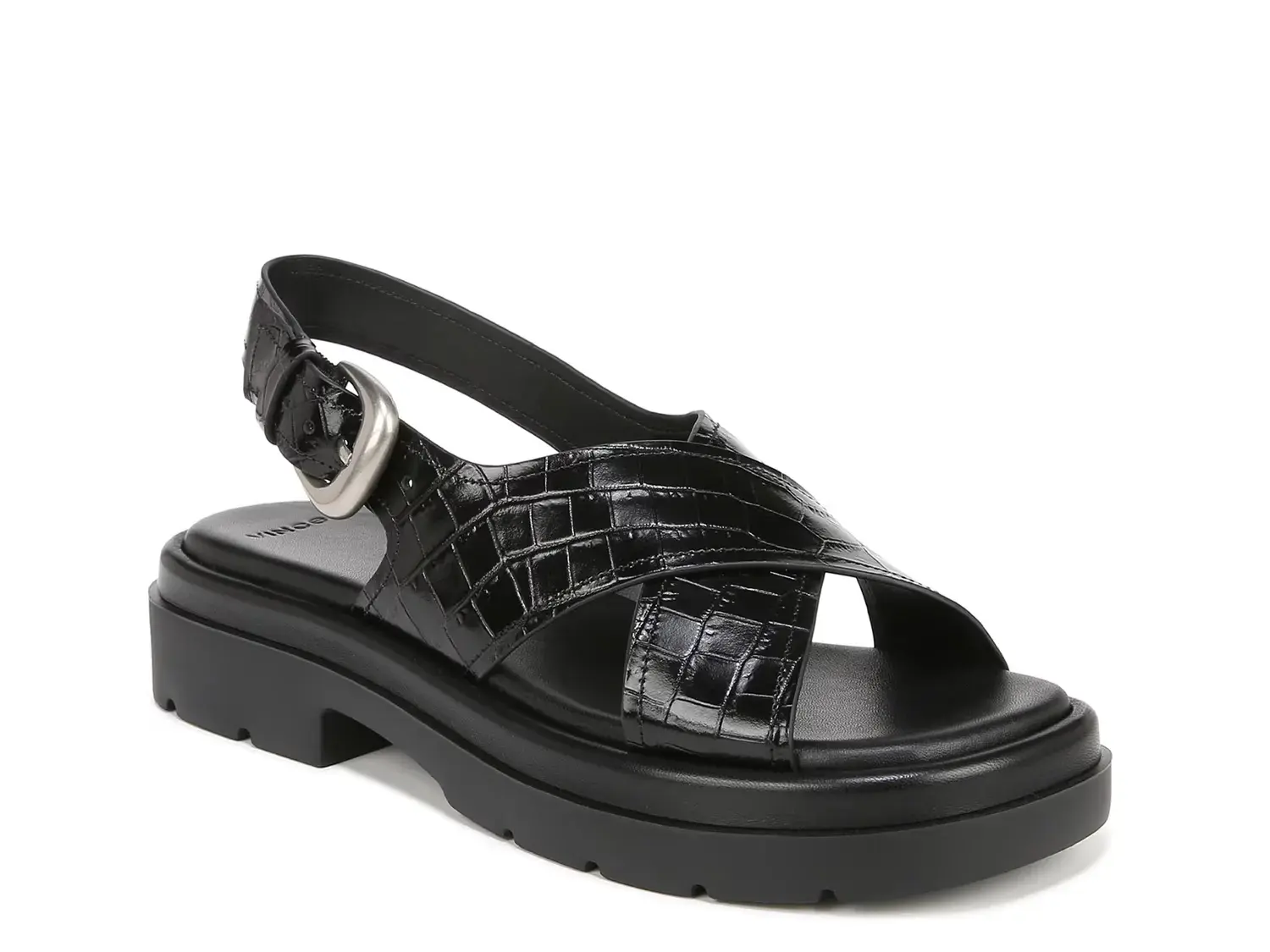 Современные во всех отношениях сандалии Vince Helena заставят вас говорить, куда бы вы ни пошли. Регулируемые сандалии, сертифицированные по стандарту LWG Gold, имеют пряжку с красивой текстурой, которая хорошо сочетается с перекрестными ремешками. Острый квадратный носок придает идеальный вид.