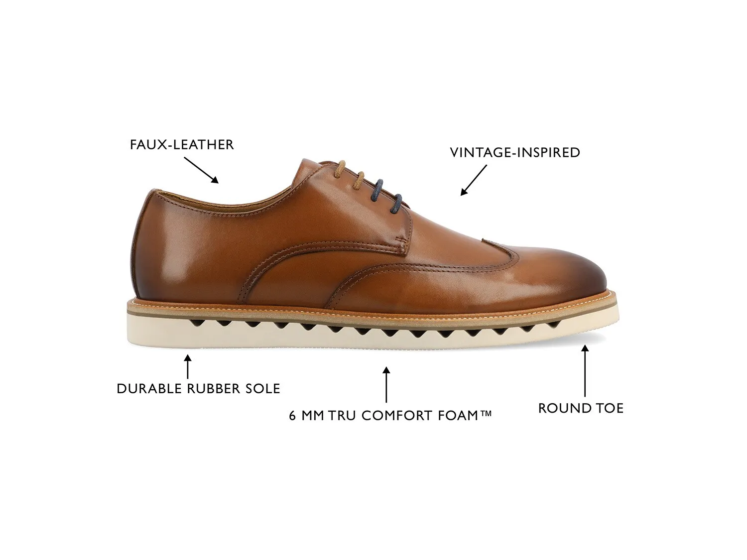 Заявите об изысканности с помощью оксфордов Evander от Vance Co. Эта винтажная обувь с верхом из веганской синтетической ткани станет стильным и экологичным вариантом для любого случая. Стелька из пеноматериала Tru Comfort и дышащая сетчатая подкладка обеспечивают комфорт и воздухопроницаемость в течение всего дня. Прочная резиновая подошва улучшает сцепление и облегчает шаги.