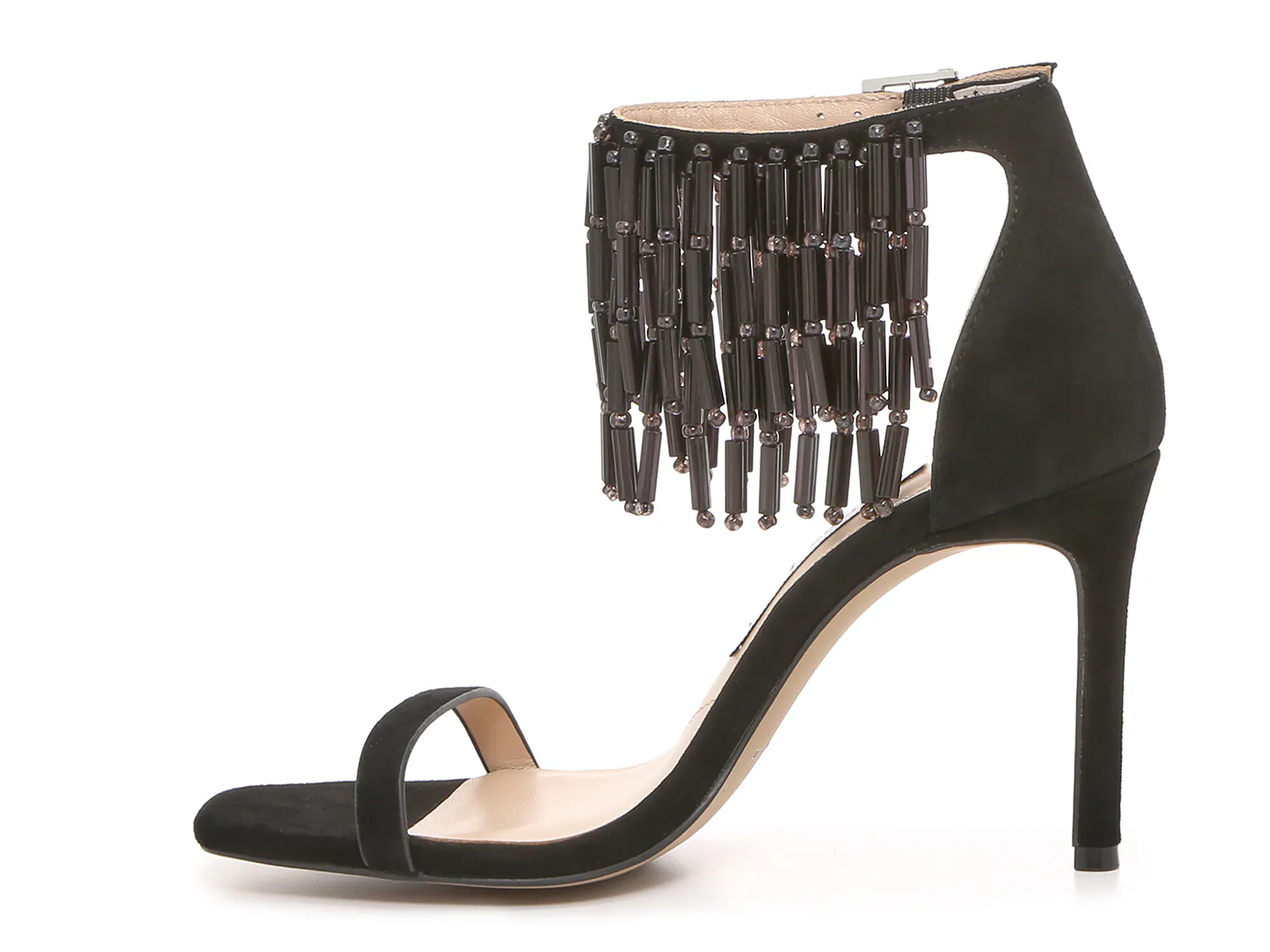 Придайте образу блеск эпохи флэпперов с помощью сандалий Erich от Charles David. Бахрома из бисера вдоль ремешка на щиколотке придает изюминку, а изящный силуэт подчеркивает резкость.