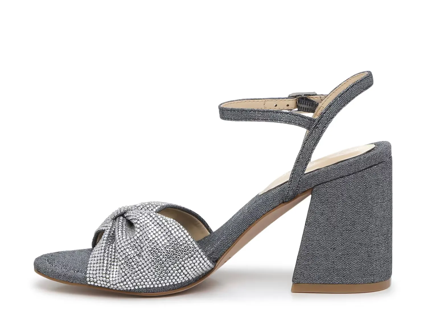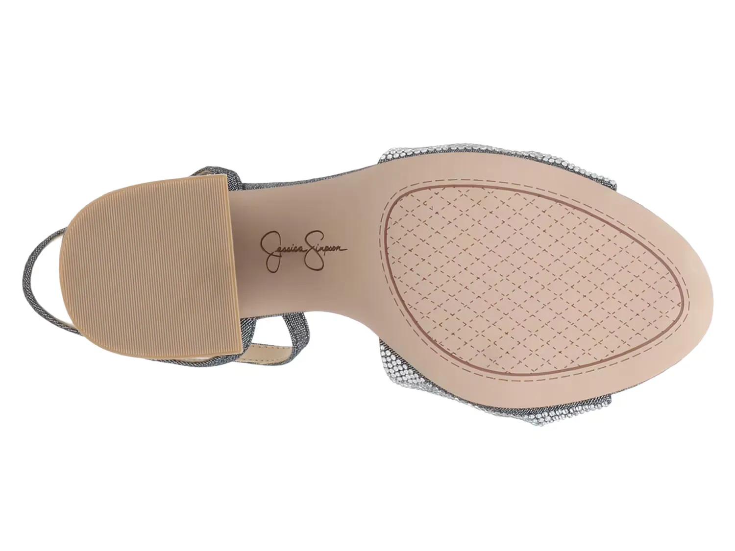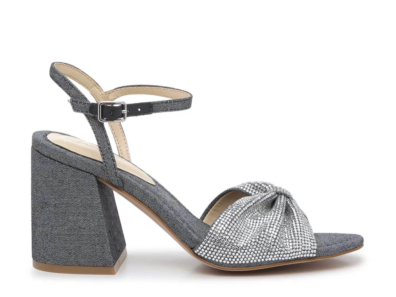 Вы обязательно будете блистать в сандалиях Rozin от Джессики Симпсон. Эта пара изготовлена ​​из мерцающей ткани и украшена заклепками вдоль ремешка. В комплект входит прочный блочный каблук, который придаёт образу модные нотки.