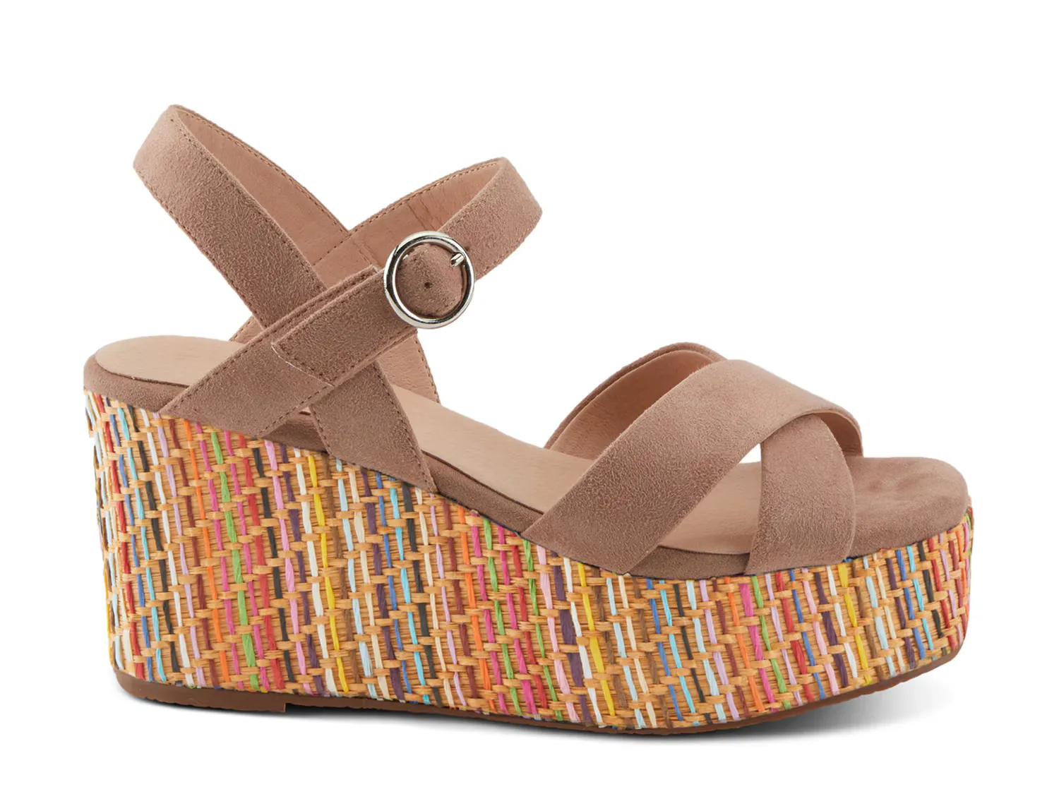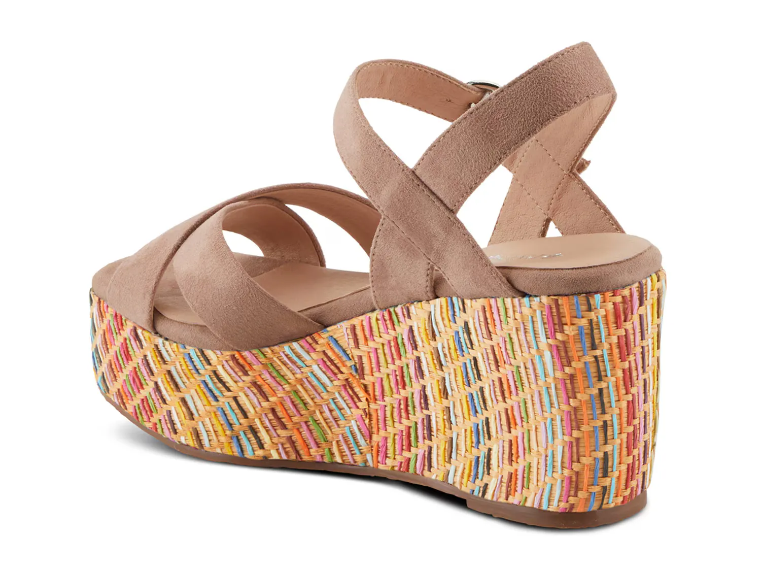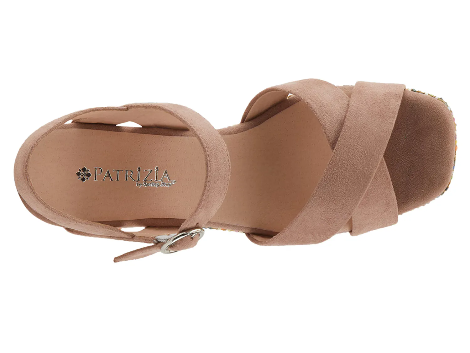 Испытайте идеальное сочетание современного образа и уникального стиля в босоножках на танкетке Patrizia Rainbowfun. Разноцветная рафия, обертывающая танкетку, подчеркивает эти босоножки с ремешком на щиколотке, перекрещивающимися ремешками и квадратным открытым мыском, придающим модели острый вид.