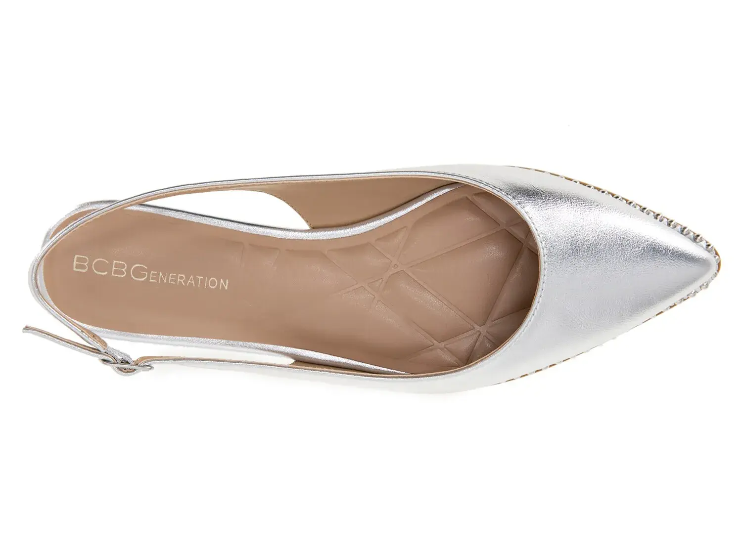 Придайте своему наряду уникальный стиль с помощью балетки Valerie от BCBGeneration. Верх из тканой ткани рафии обеспечивает длительный комфорт, а заостренный носок и акцент в виде шариковой цепочки на подошве создают шикарную привлекательность. Эта обувь на плоской подошве с открытой пяткой оснащена мягкой стелькой, обеспечивающей дополнительную амортизацию.