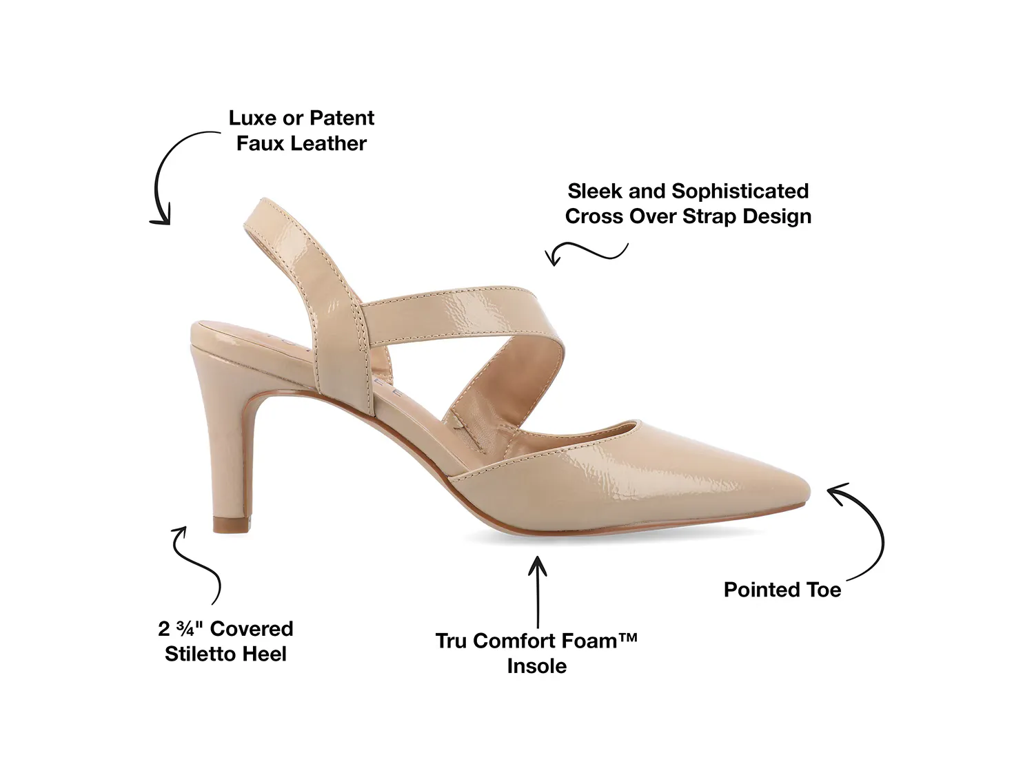 Выглядите потрясающе великолепно в туфлях Scarlett из коллекции Journee. Асимметричный ремешок на союзке придает элегантный вид этой туфле с заостренным носком, дополненной нежной стелькой из пеноматериала Tru Comfort.