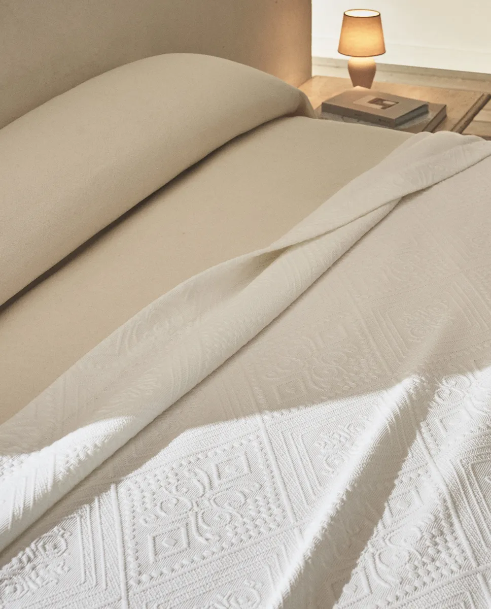 Хлопковое покрывало с геометрическим рисунком Zara Home, белый 8 012₽