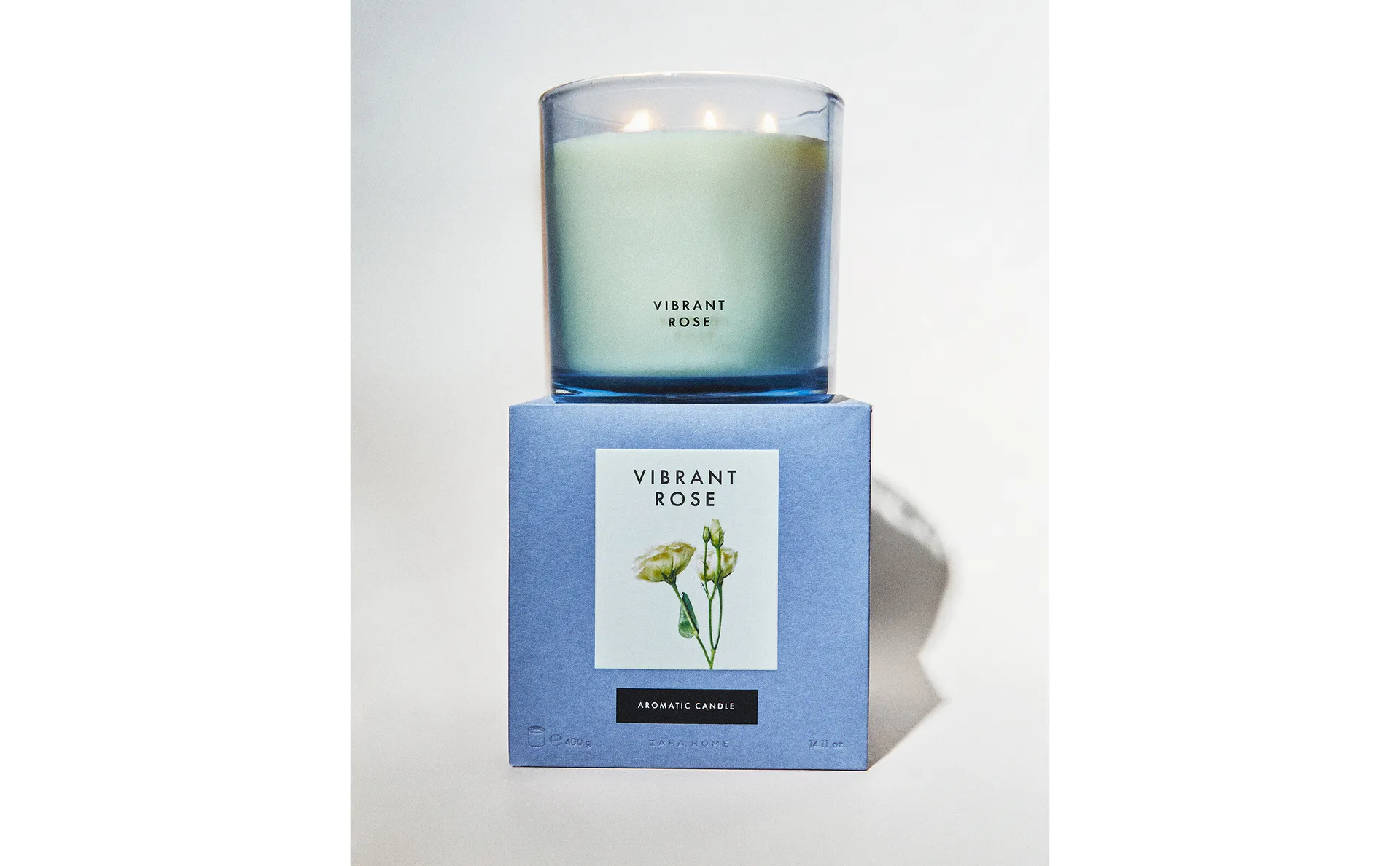 (400 г) свеча с ярким ароматом розы Zara Home, цвет Bluish Grey