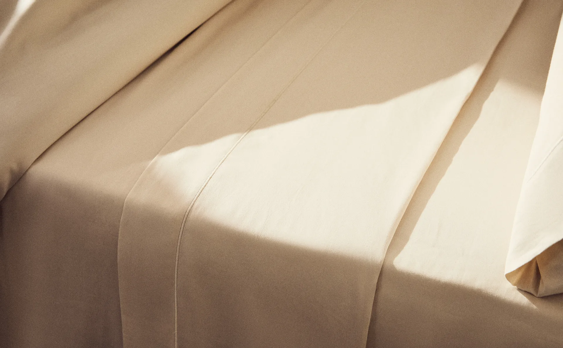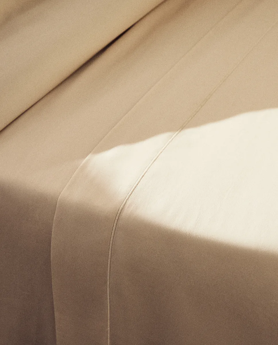 Простая плоская простыня из сатина плотностью 500 нитей.