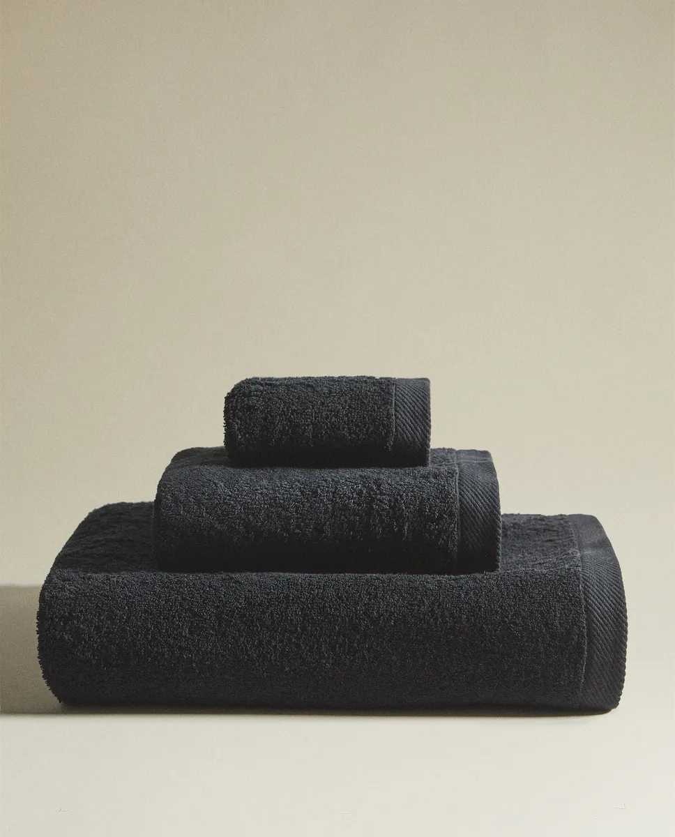 (500 гxм²) простое хлопковое махровое полотенце Zara Home, черный