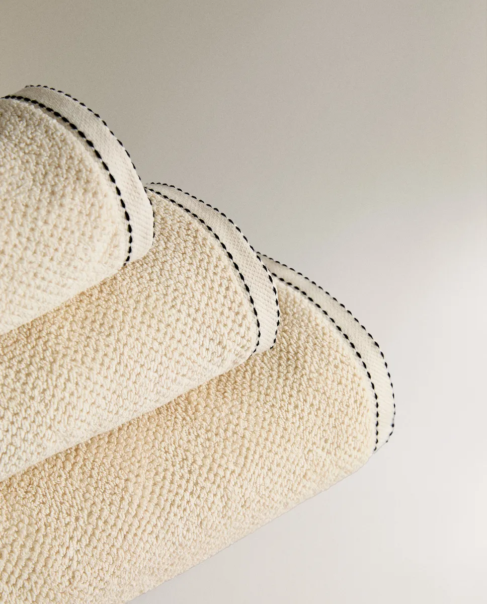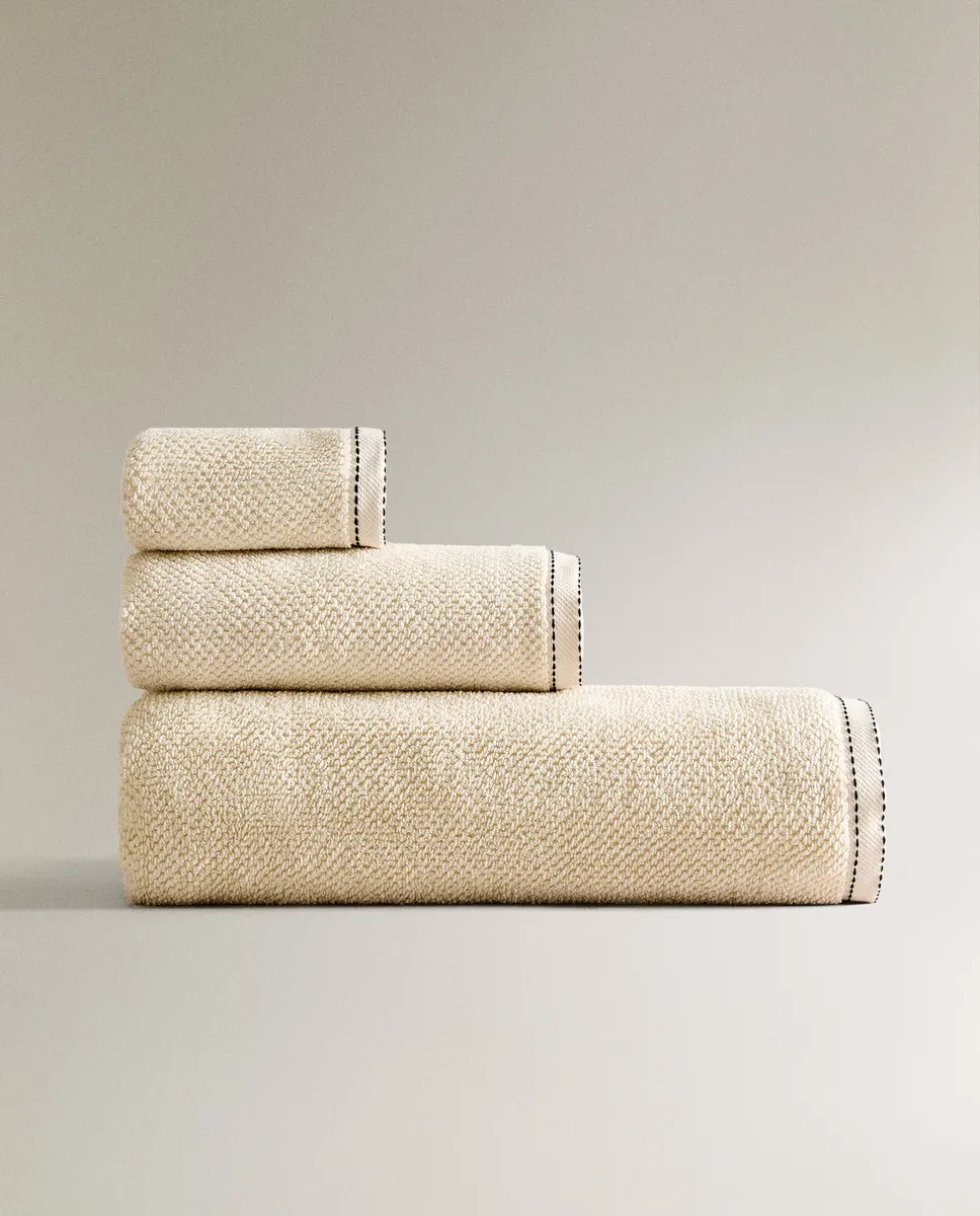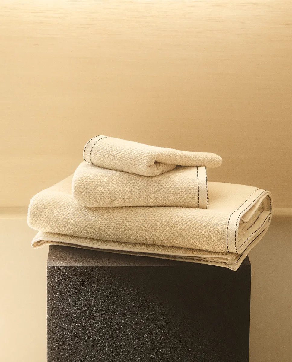 Банное полотенце с рисовой строчкой Zara Home, песок